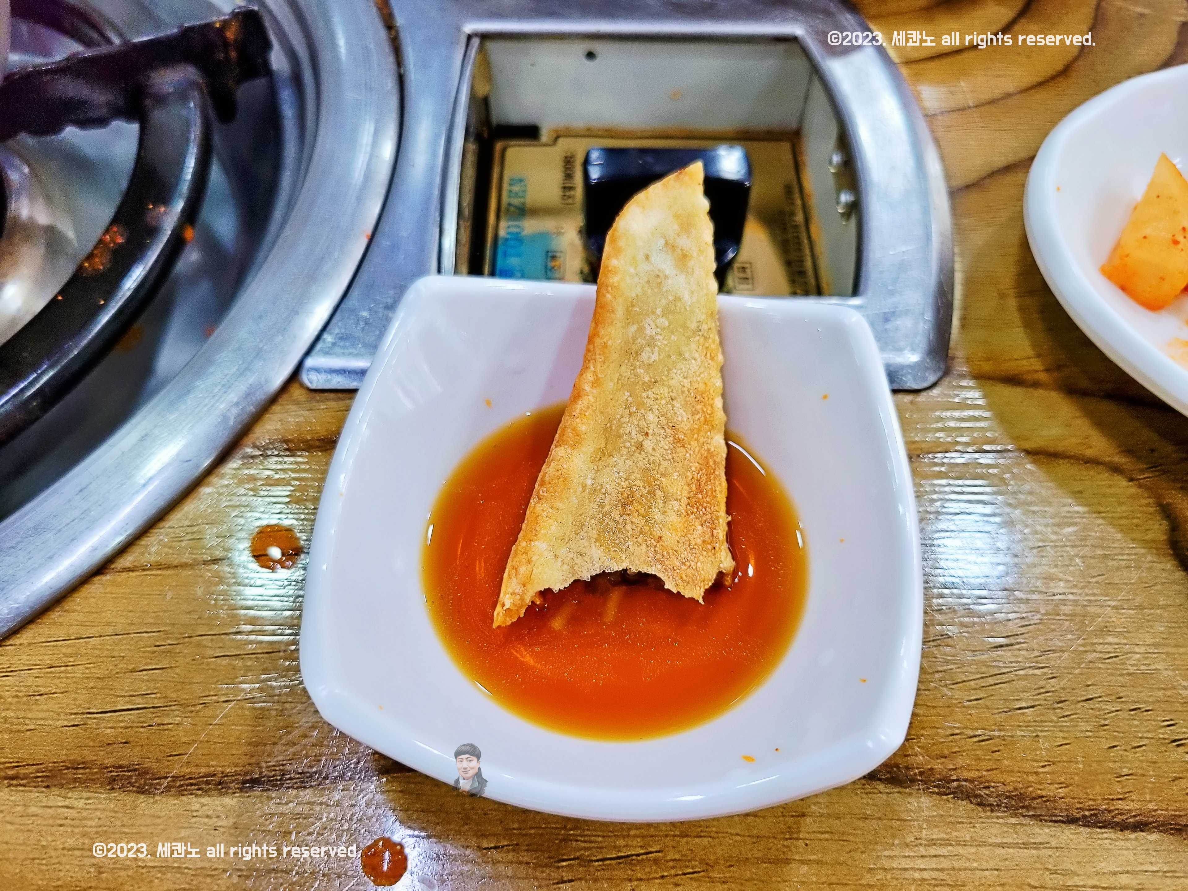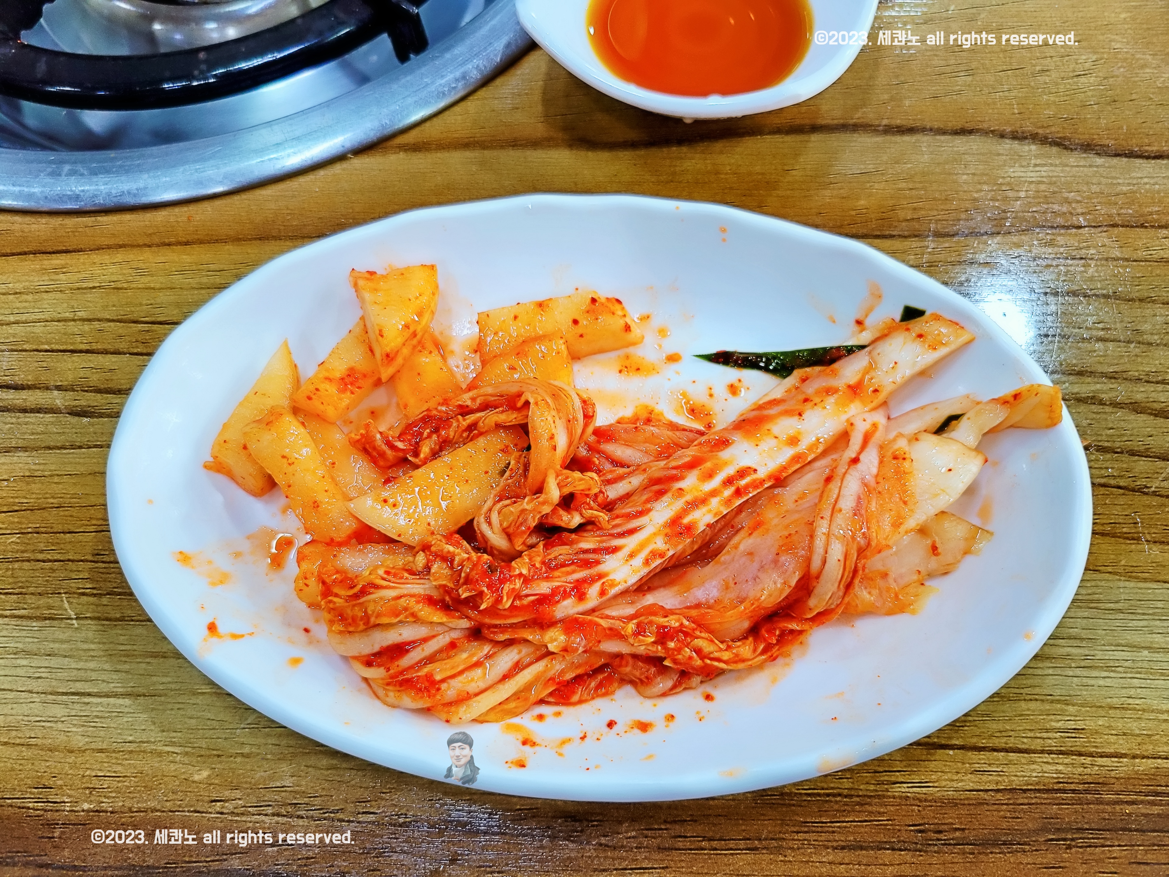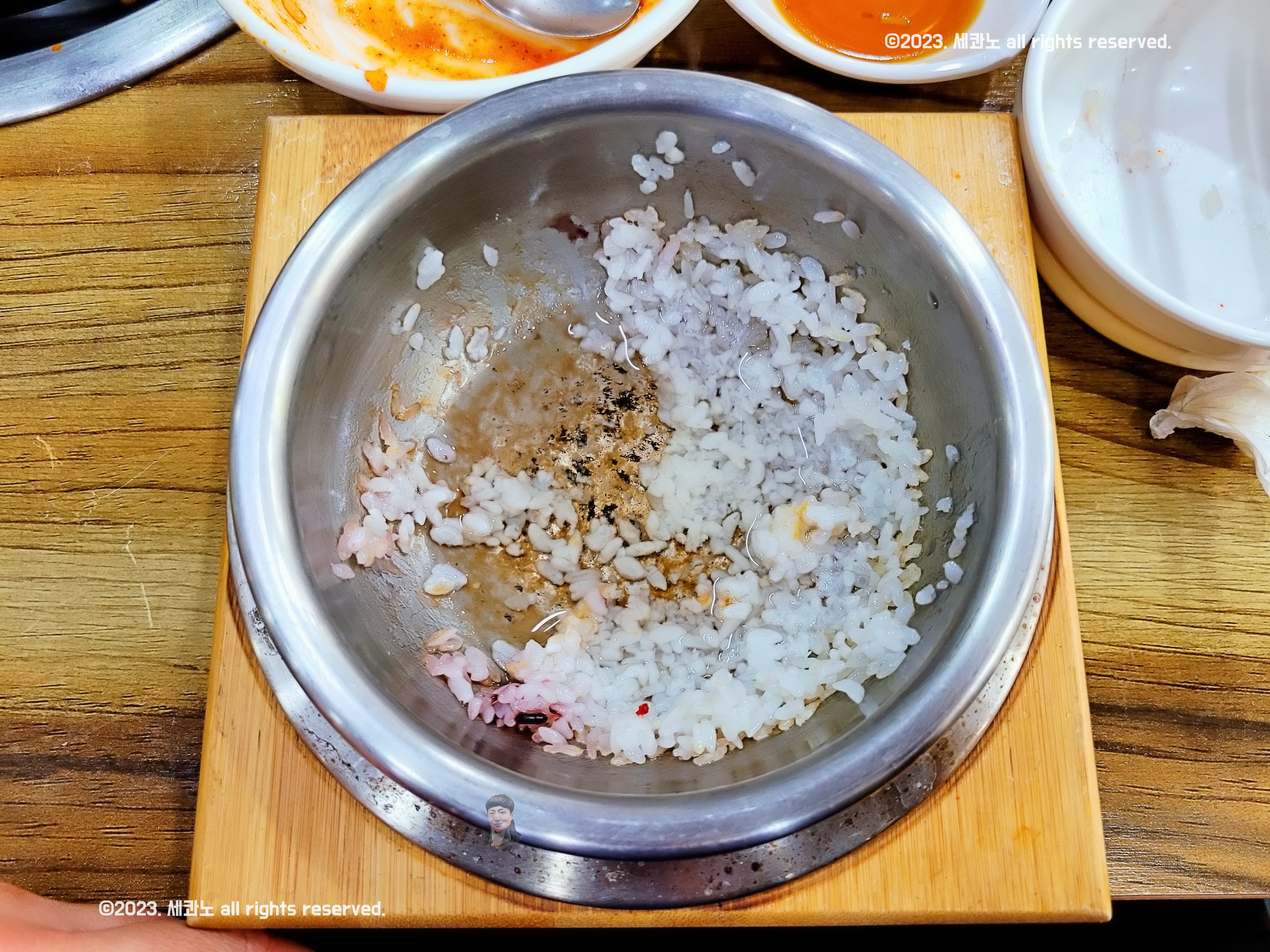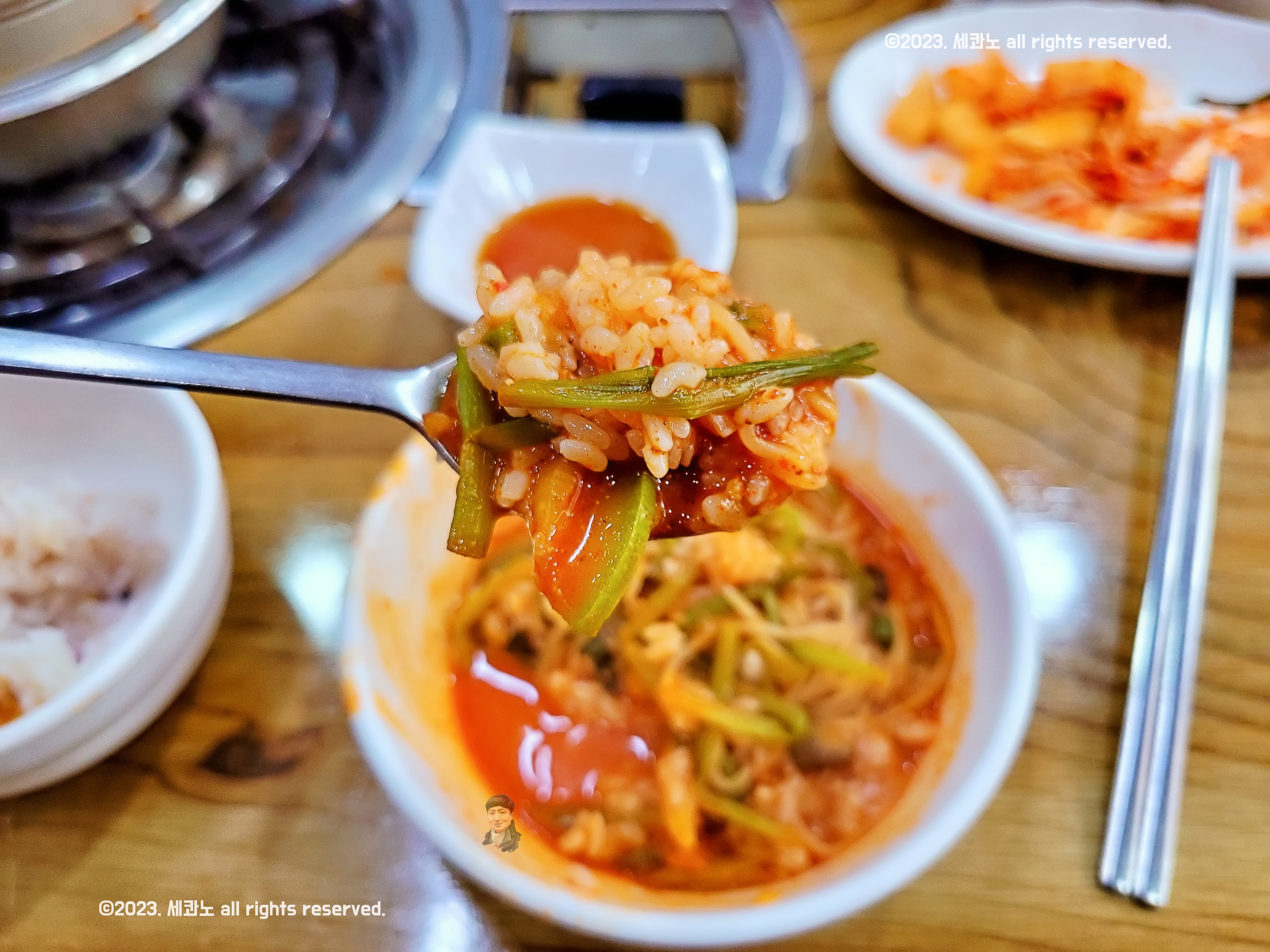 그리고 가운데 잔뜩 올라간 들깨가루와 간마늘만 보인다.