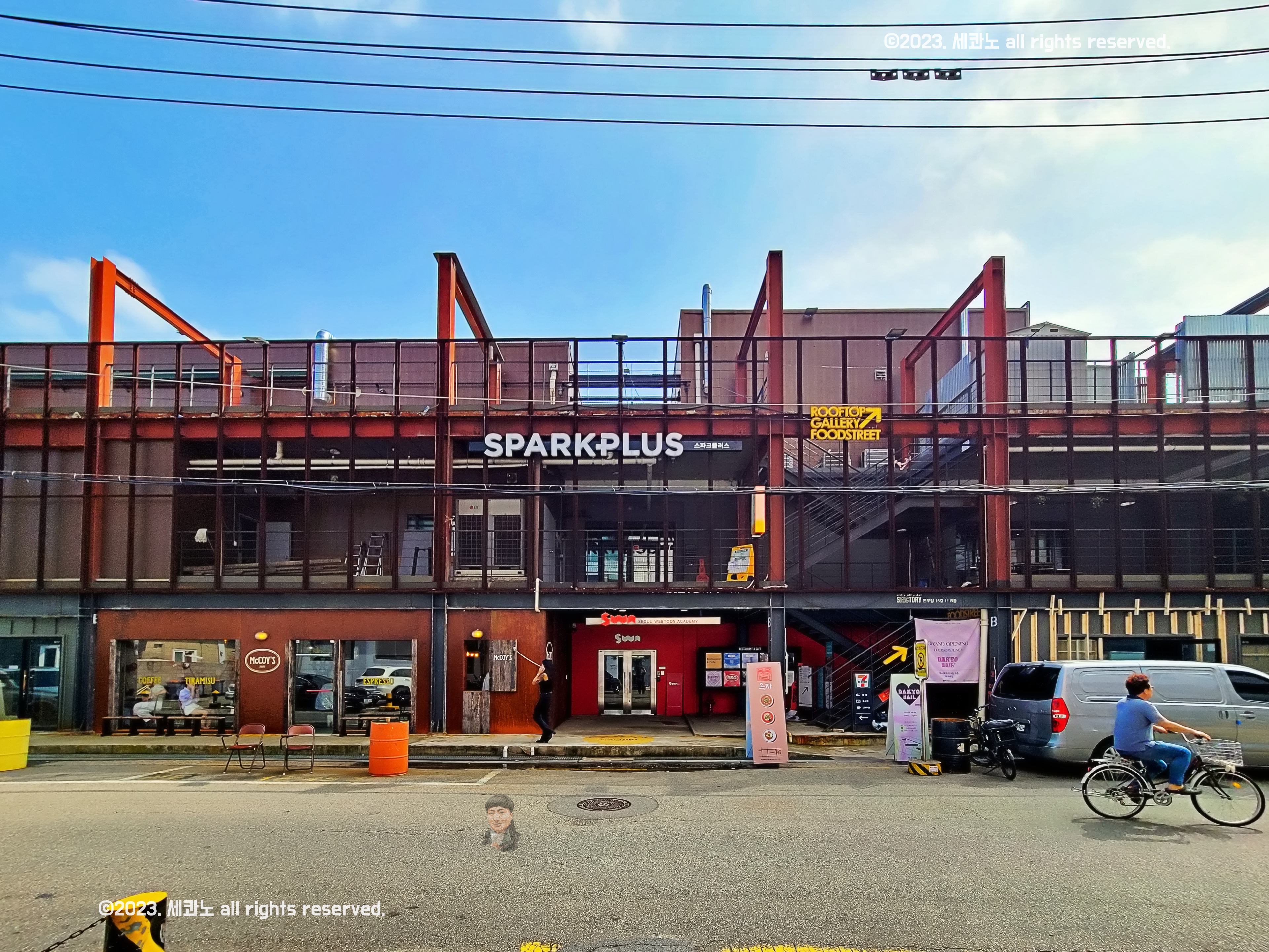 정면에서 보았을 때 SPARKPLUS라는 하얀색 간판과