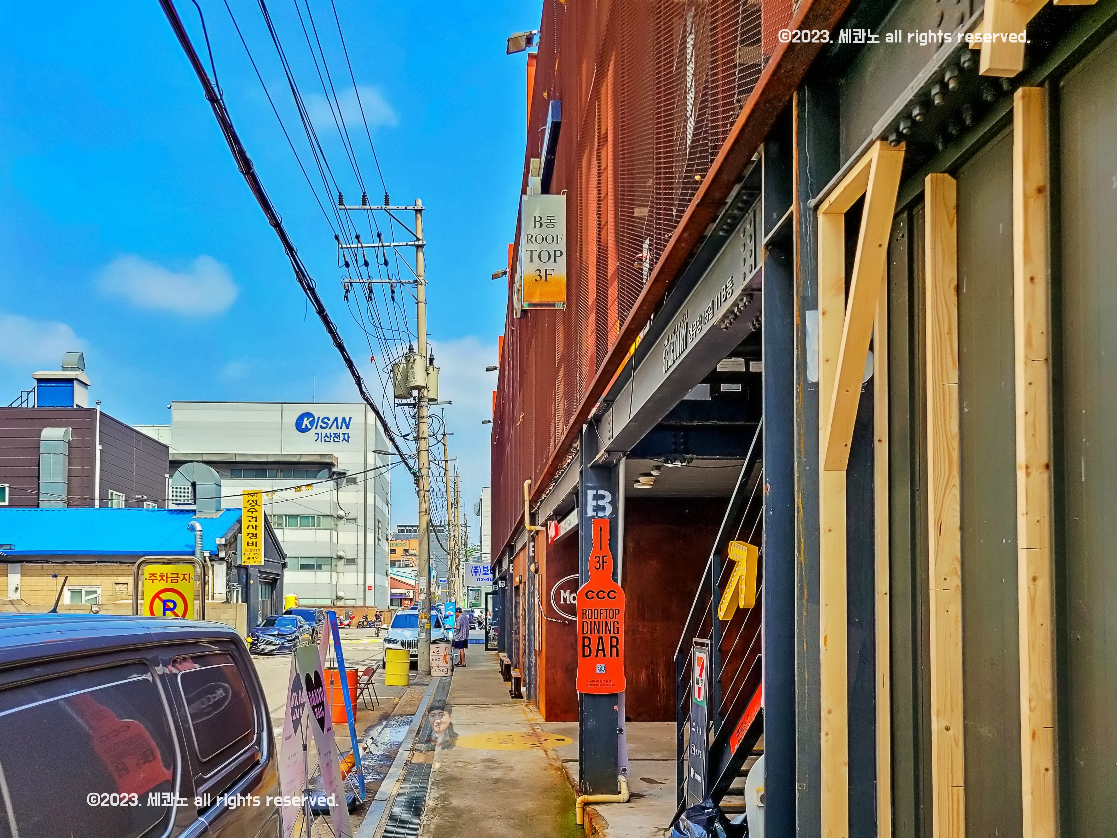 가까이 가보면 3층에 루프탑이 있다는 안내가 보인다.