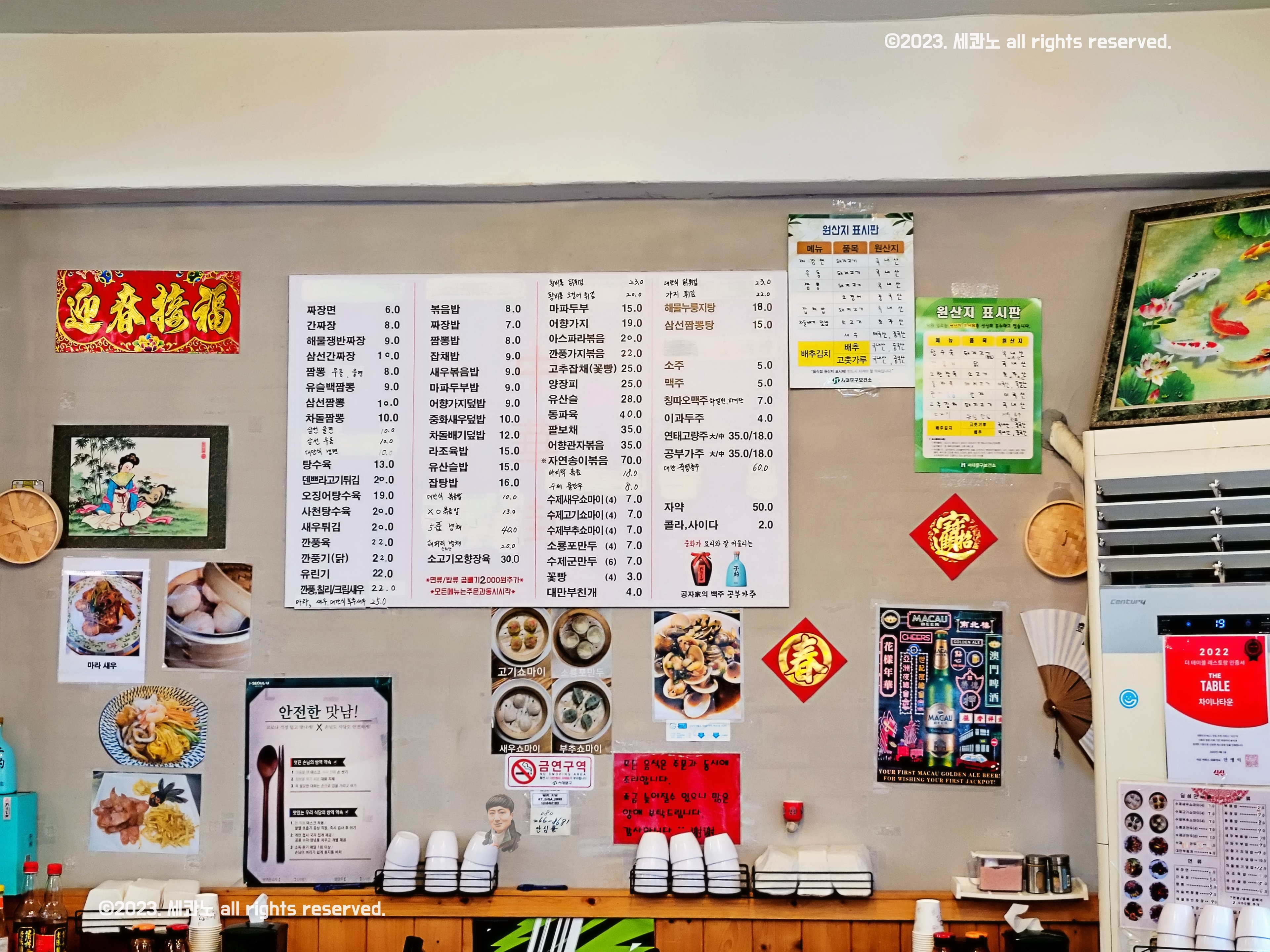 벽에 붙은 메뉴판에는