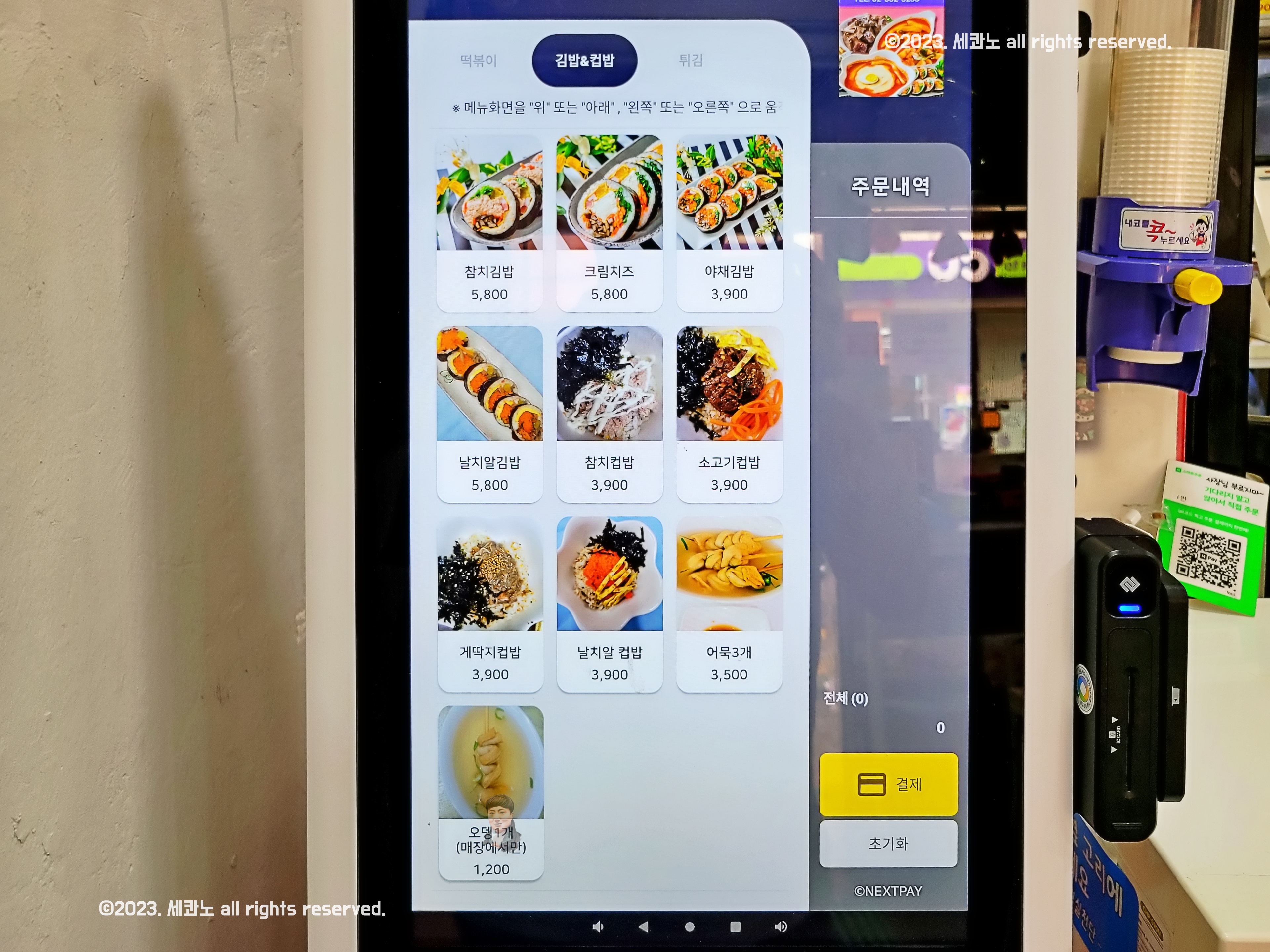 '떡볶이 하나요~', '참치김밥도 한 줄 주세요!'