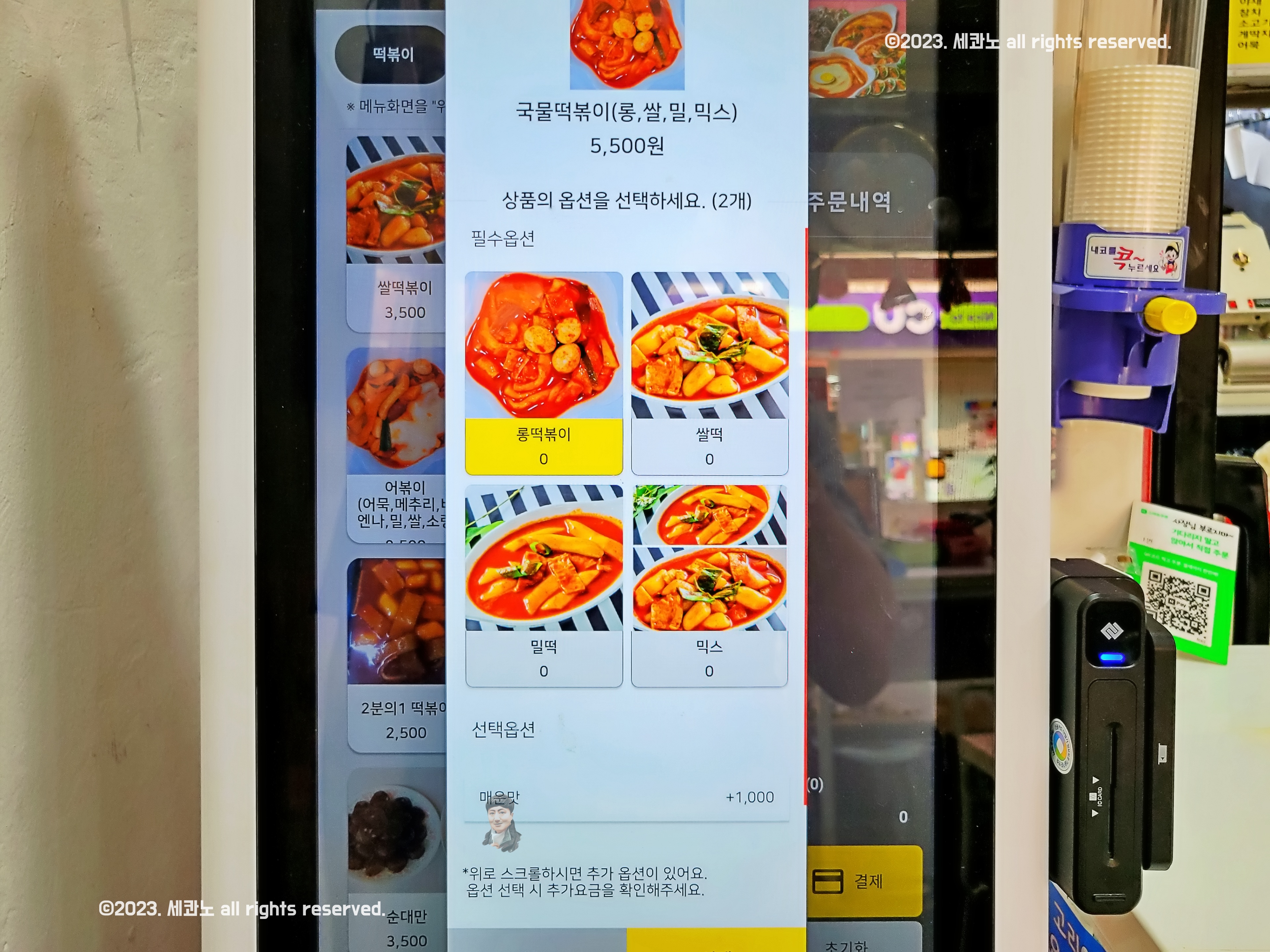 떡볶이 - 국물떡볶이 - 롱떡볶이 5,500원이다.
