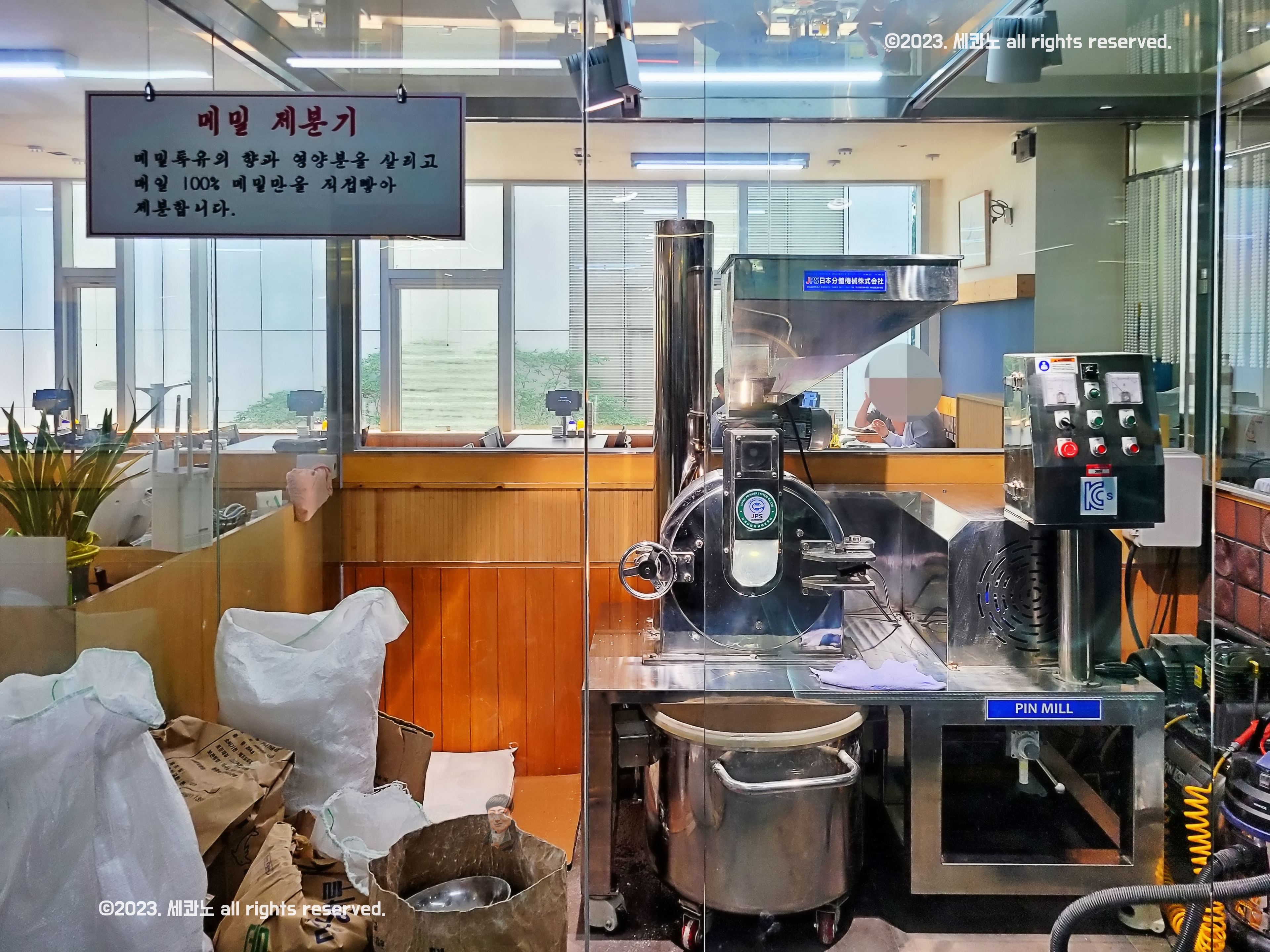 메밀 제분기를 눈에 띄게 보여주고 있고
