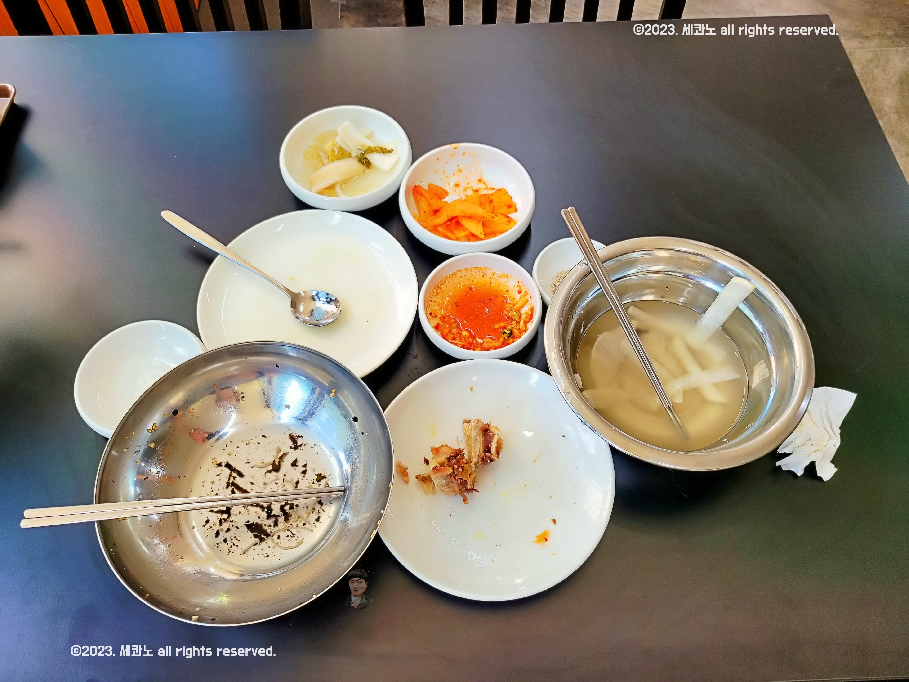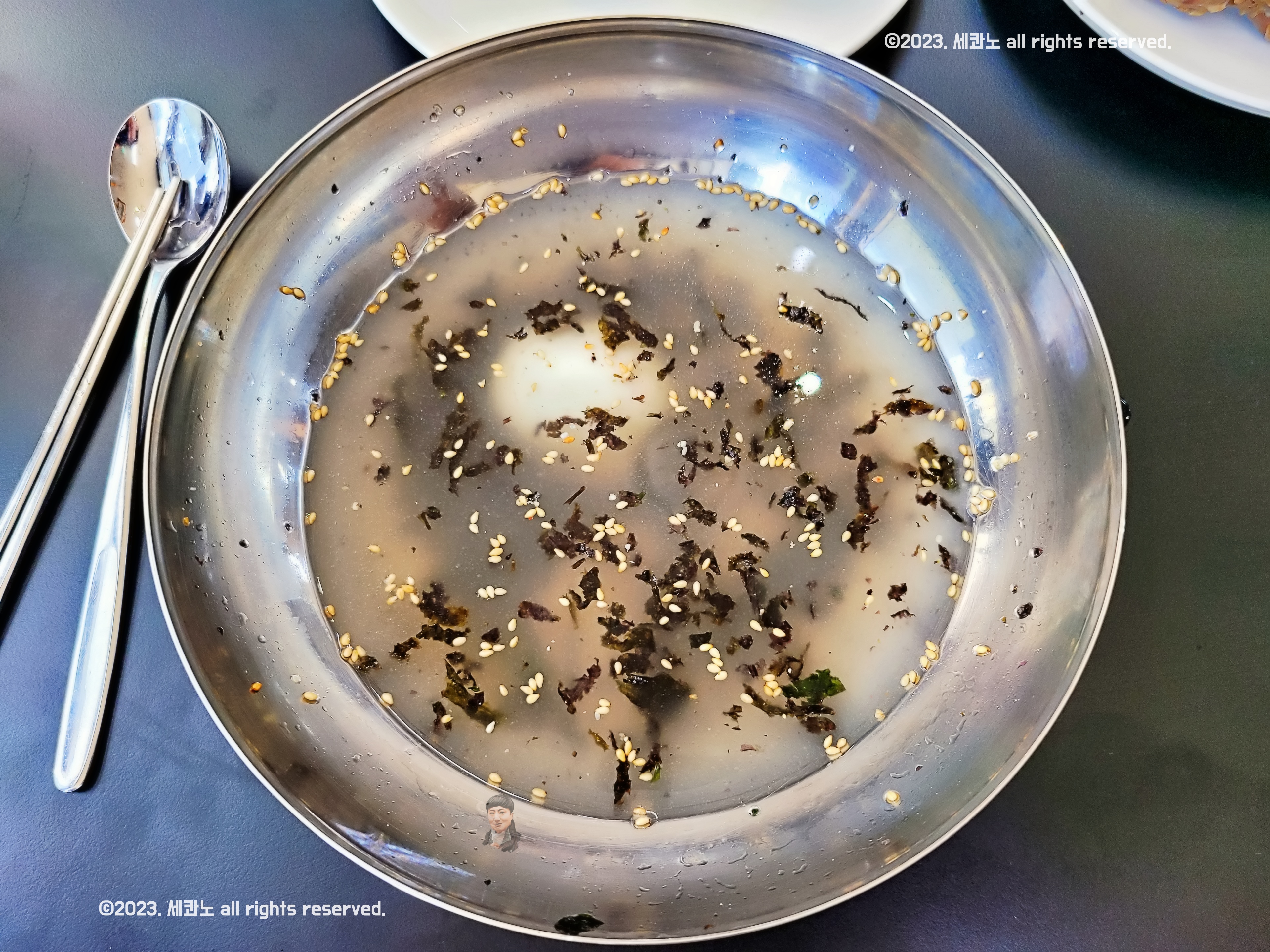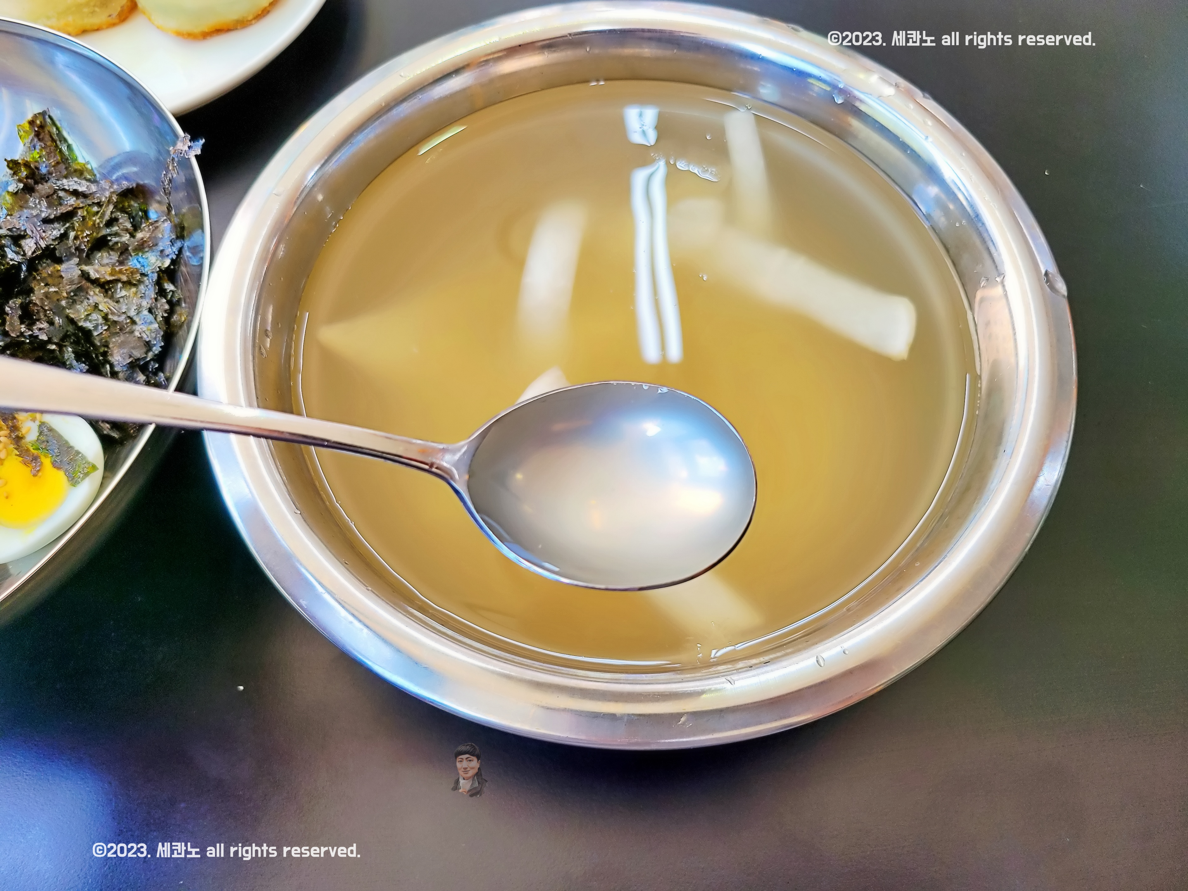 동치미 국물이 입안의 기름기를 싹 씻어주어