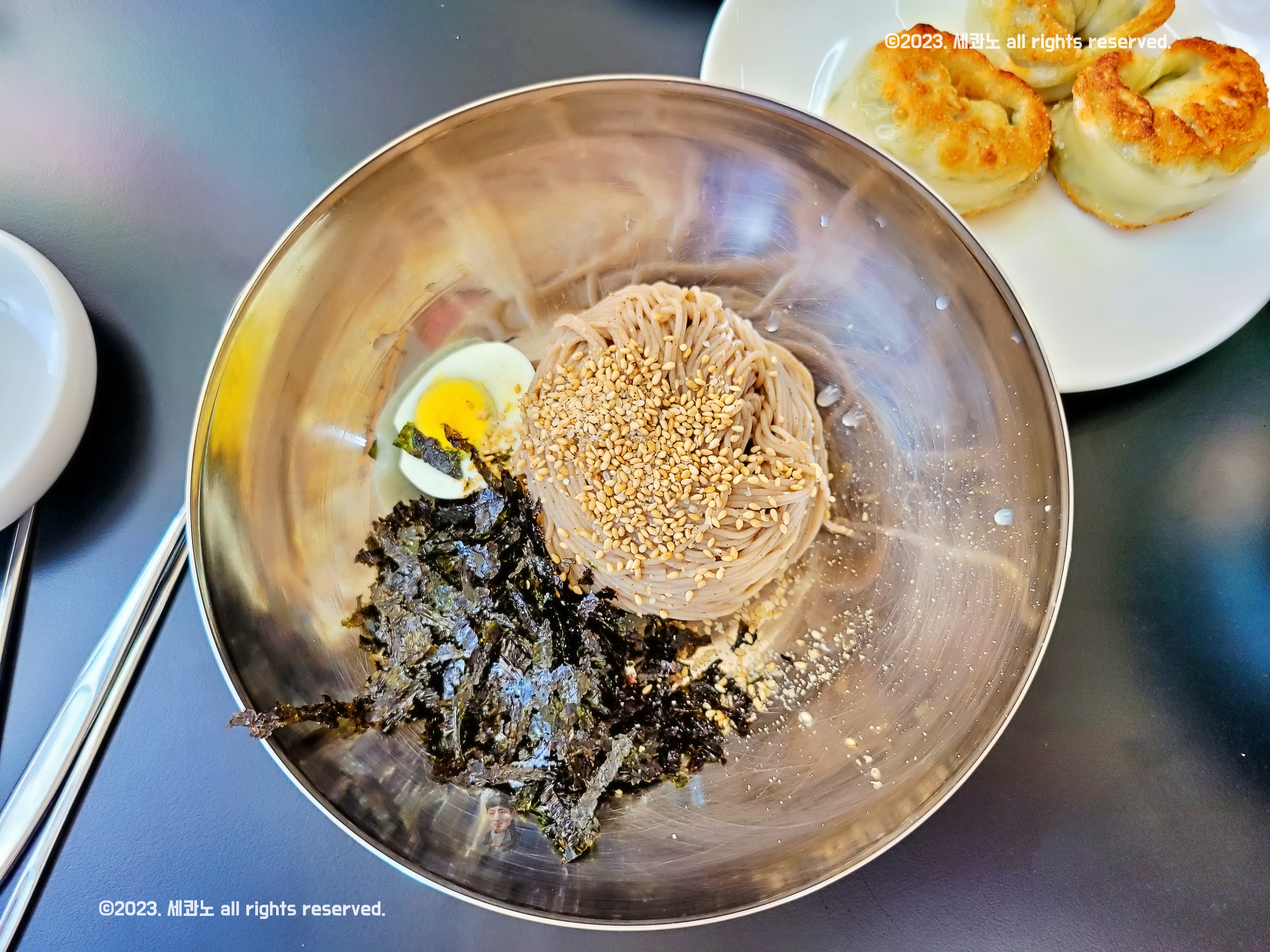 그냥 동치미 막국수에 고기만두 절반을 주문하였다.
