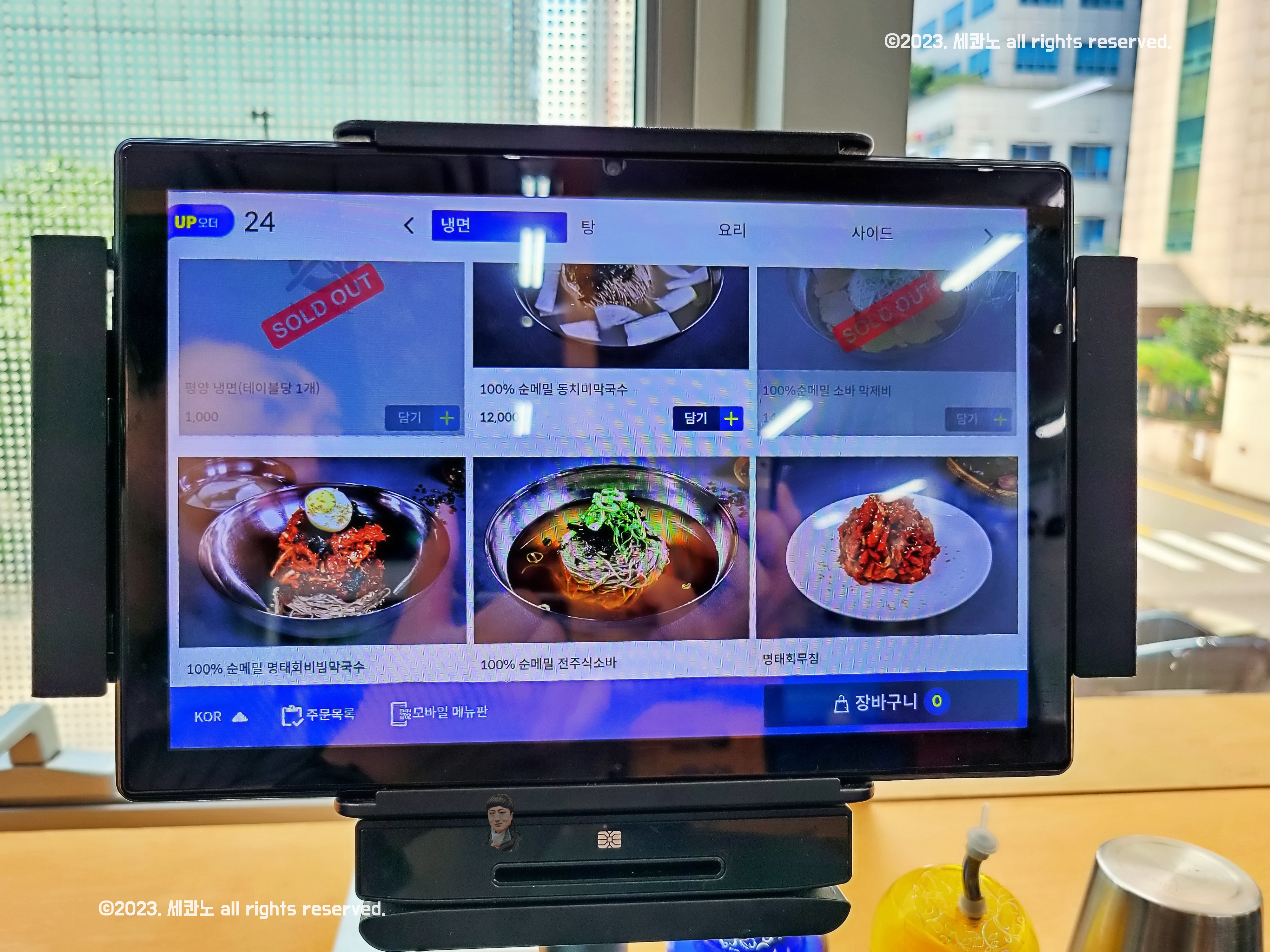 테이블마다 바로 결제까지 가능한 주문 태블릿이 있으니