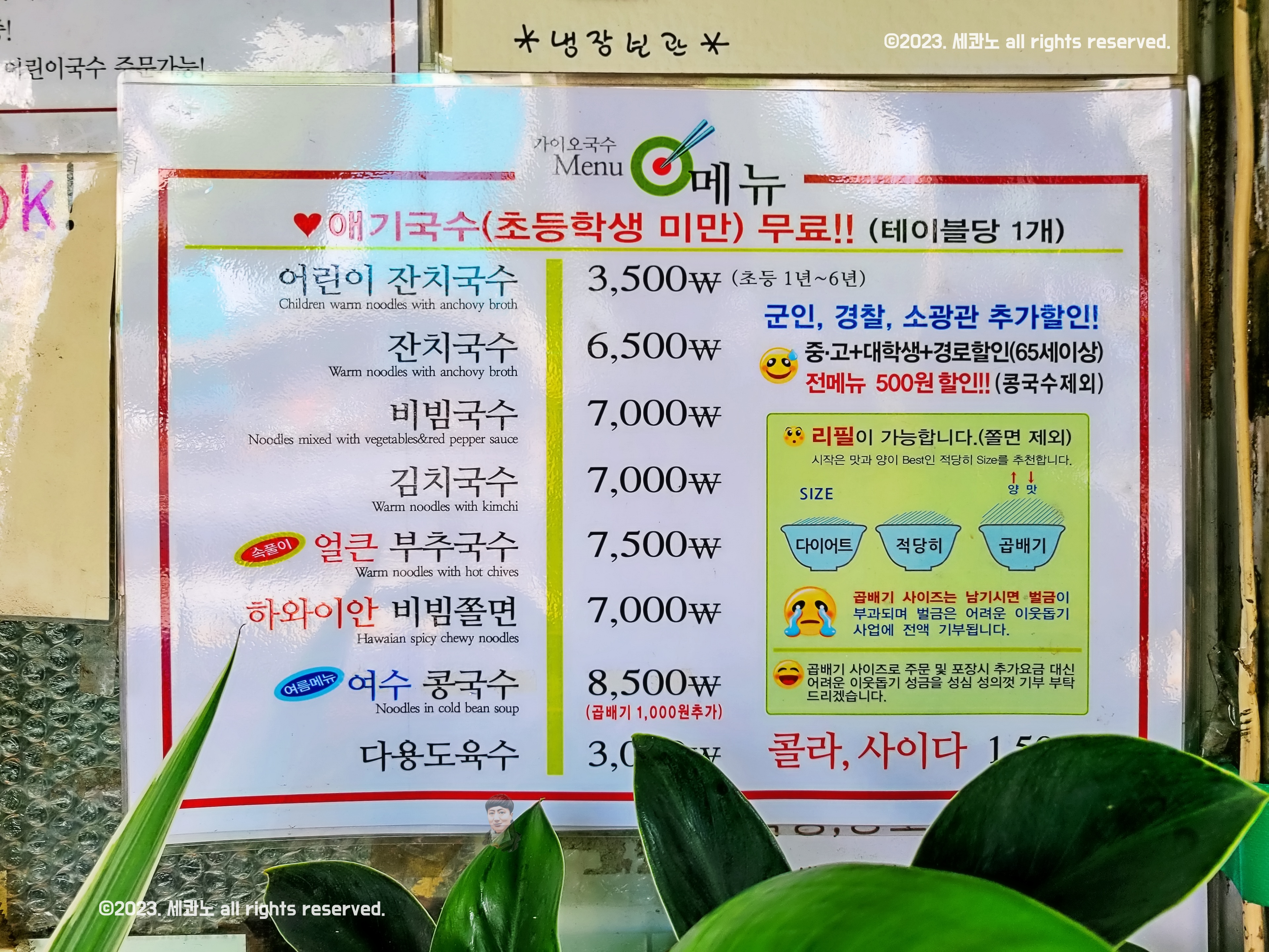 중·고+대학생, 경로할인(65세 이상) 전메뉴 500원 할인
