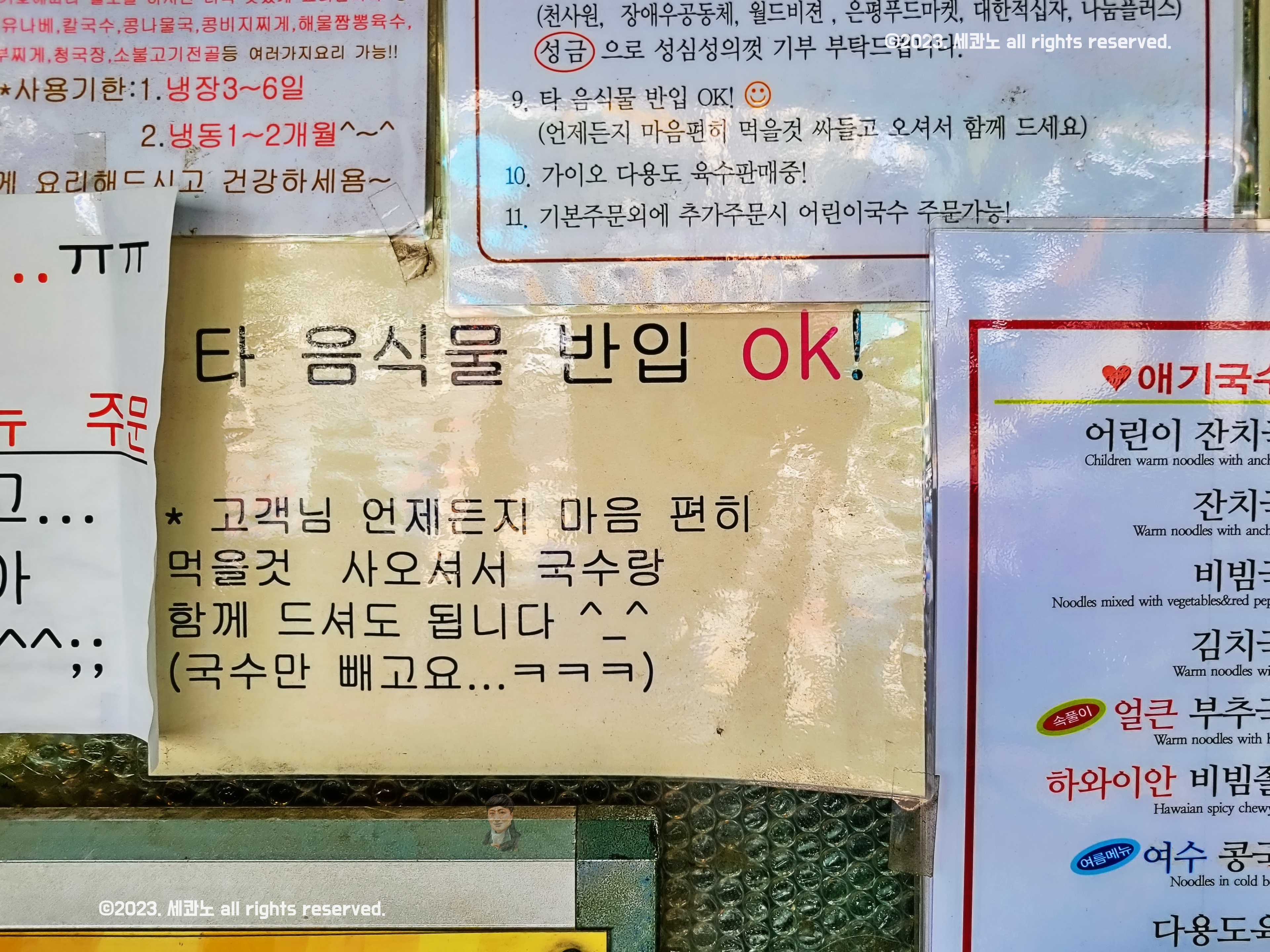 애기국수(초등학생 미만) 테이블당 1개 무료.