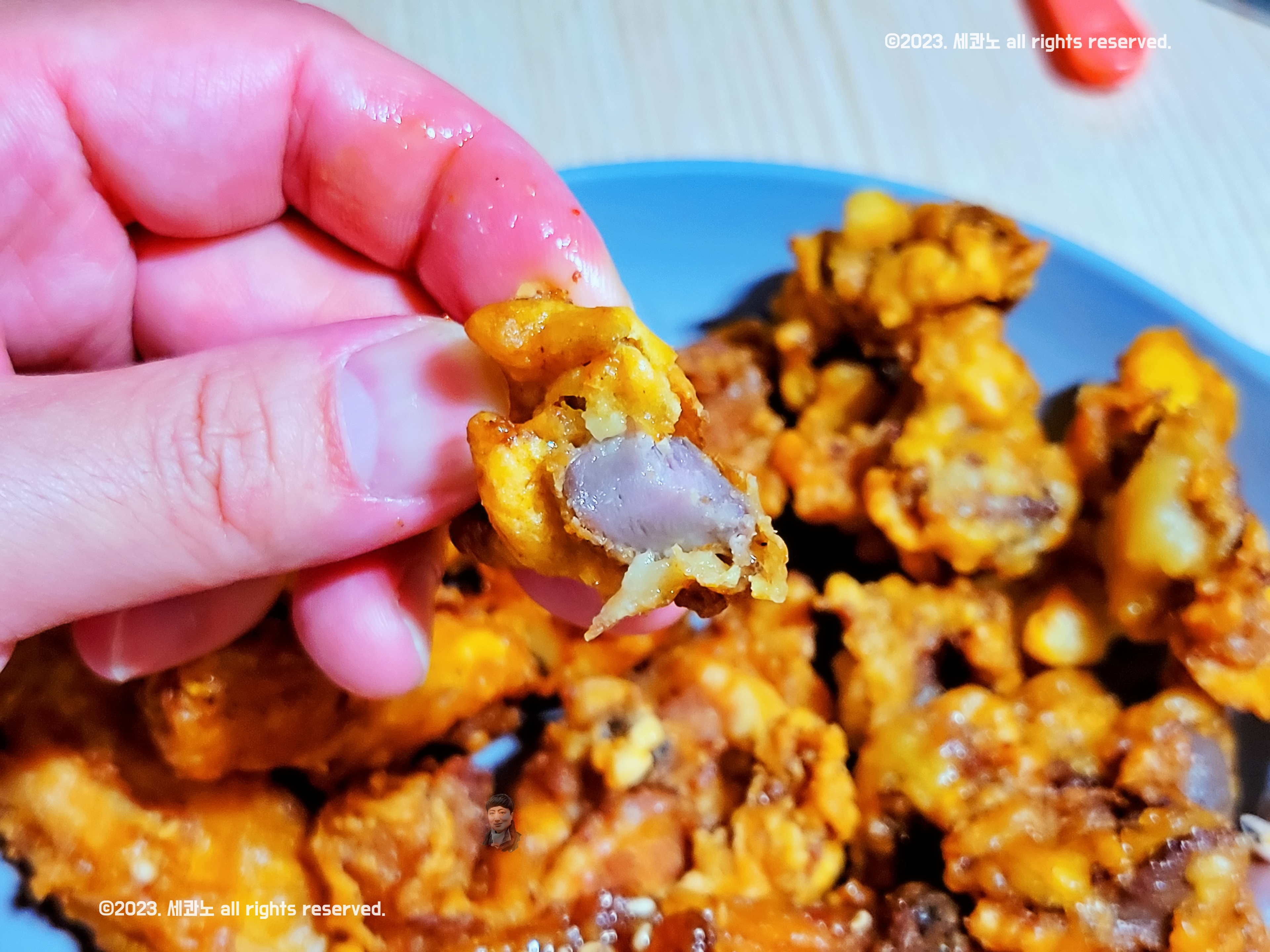 튀김 옷 역시도 카레 가루 등을 넣었다.