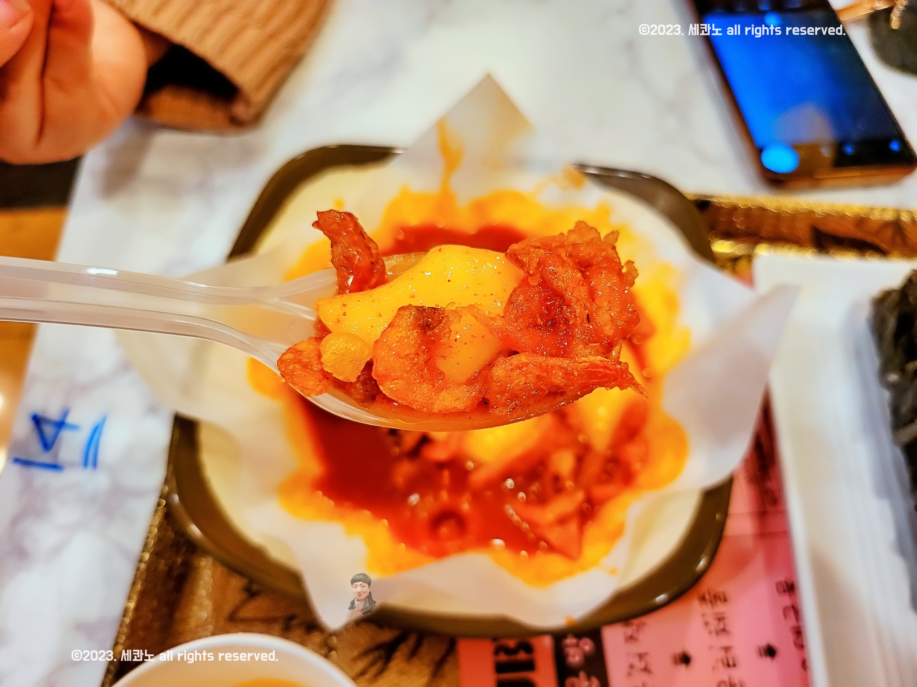 떡볶이와 민물새우튀김이 만나 색다른 맛