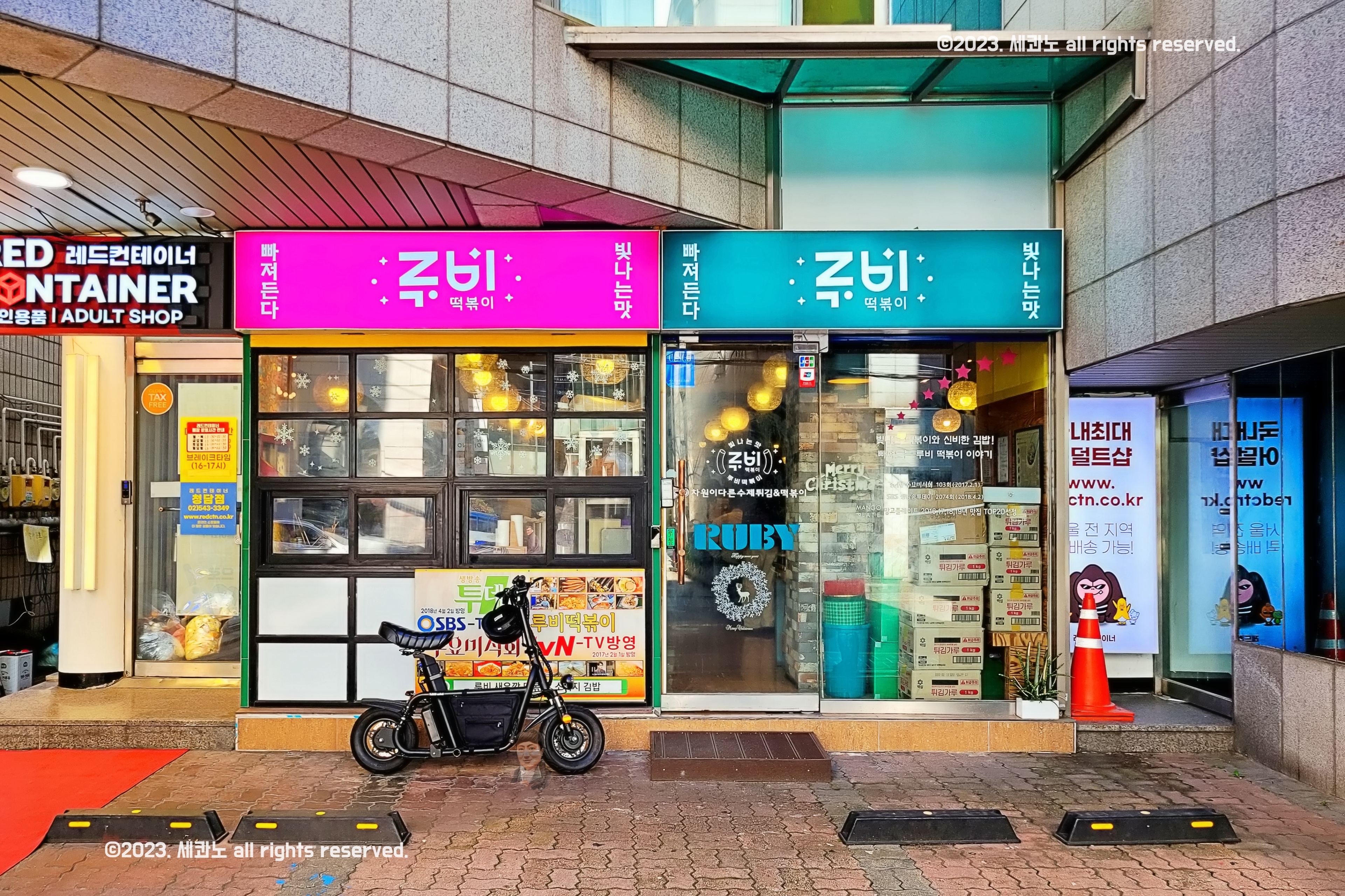 루비떡볶이는 새우깡 떡볶이로 유명하다.