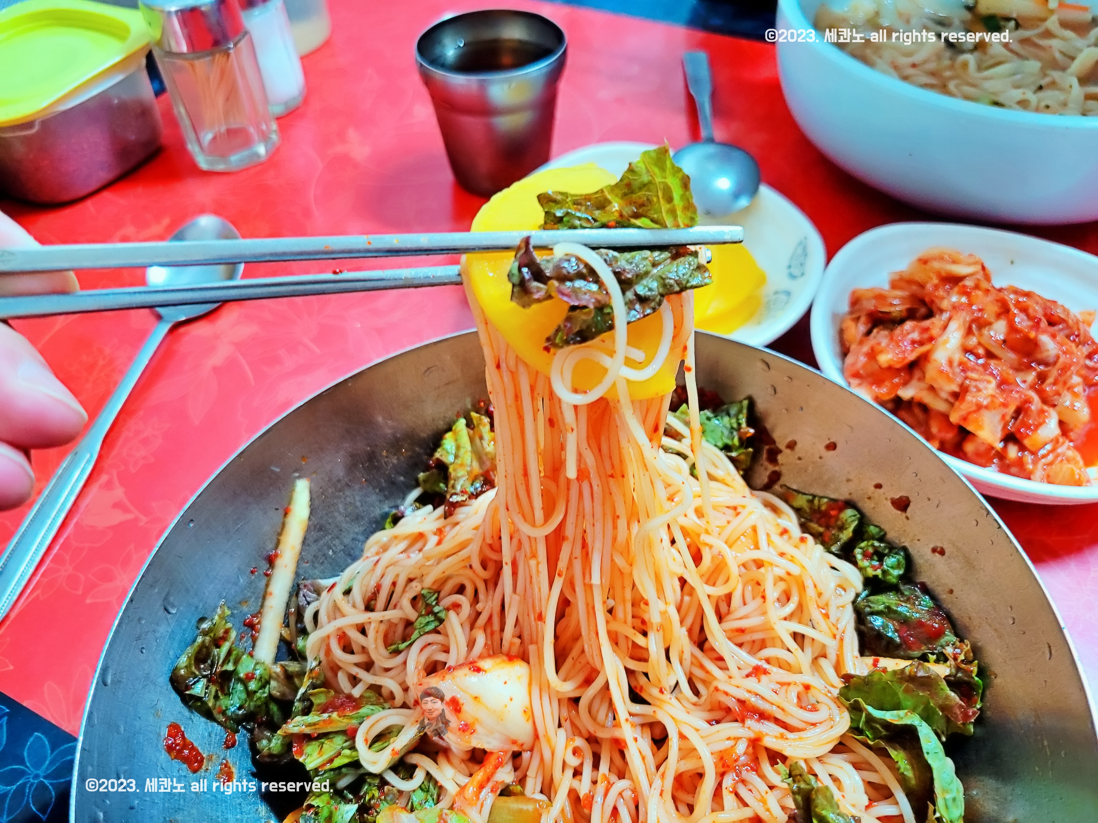 시원하고 칼칼한 열무국수 육수가 어우러져