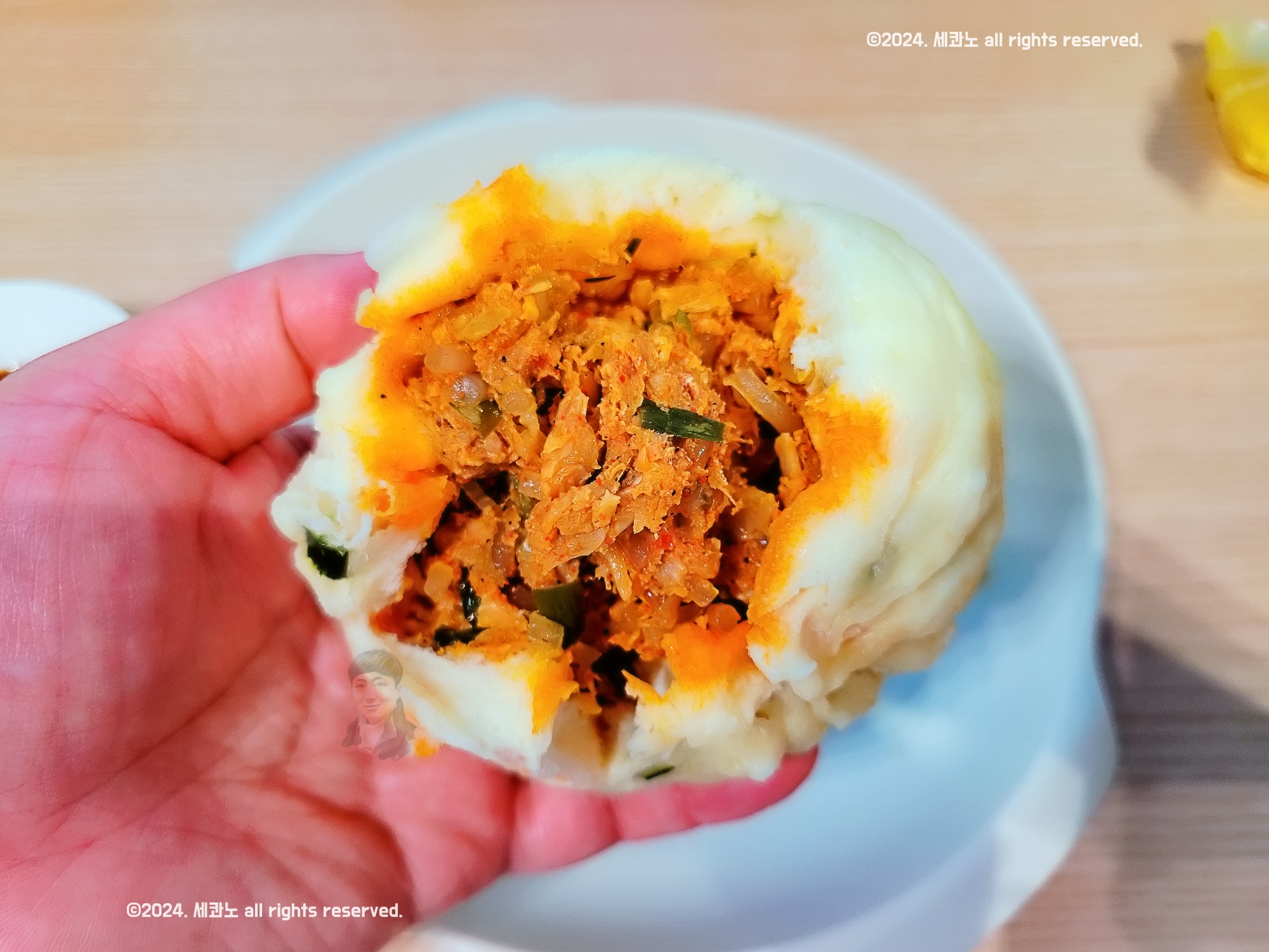 고기 왕만두부터 하나 갈라보니
