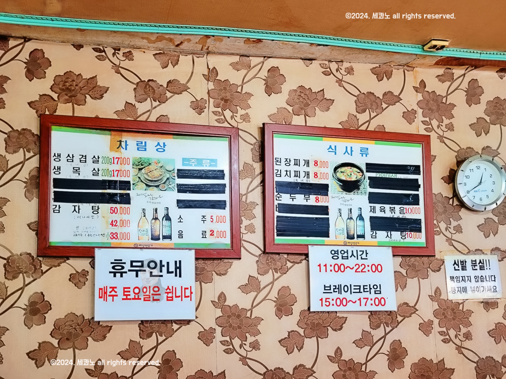 감자탕 대 50,000원, 중 42,000원. 소 33,000원