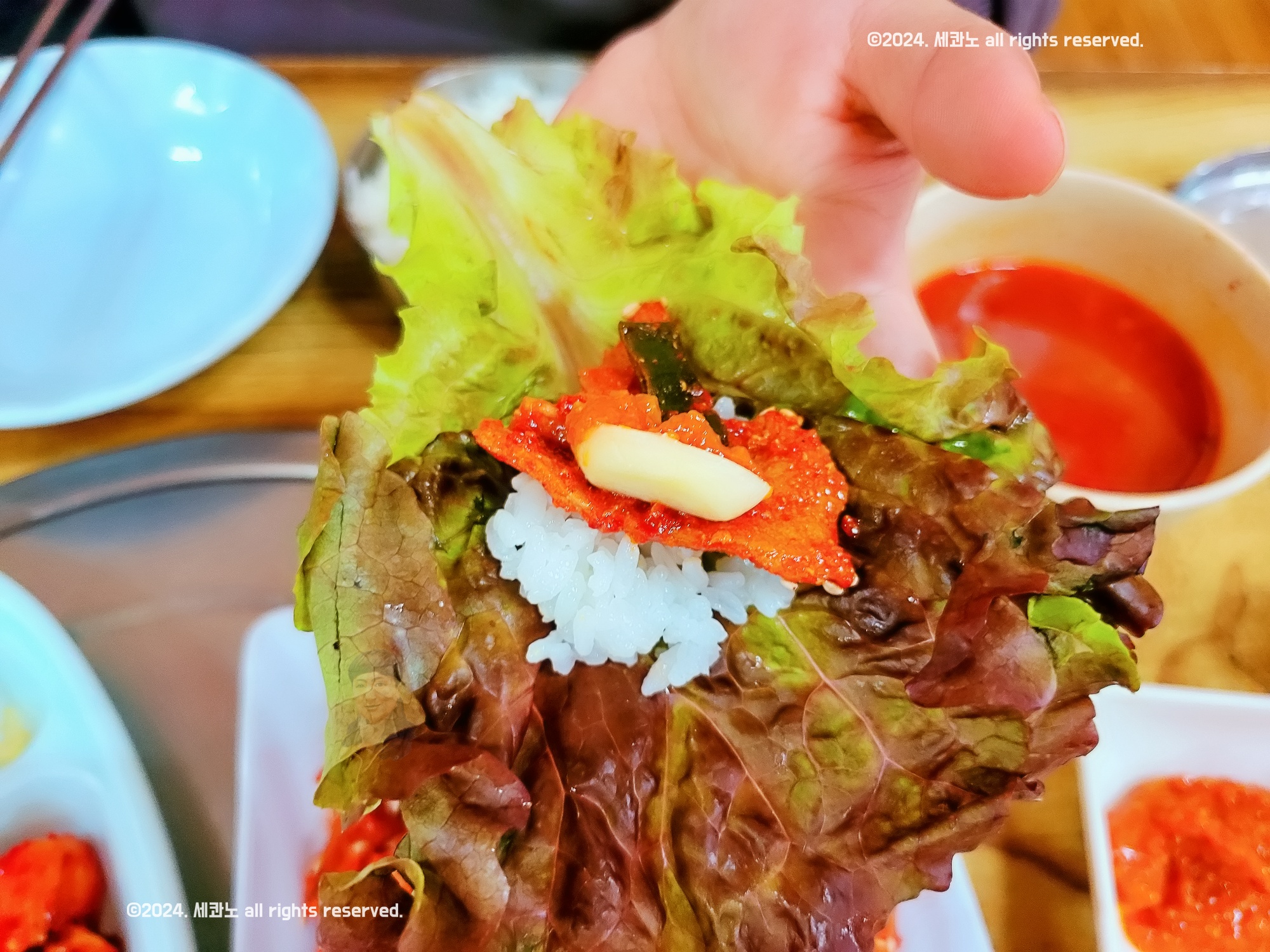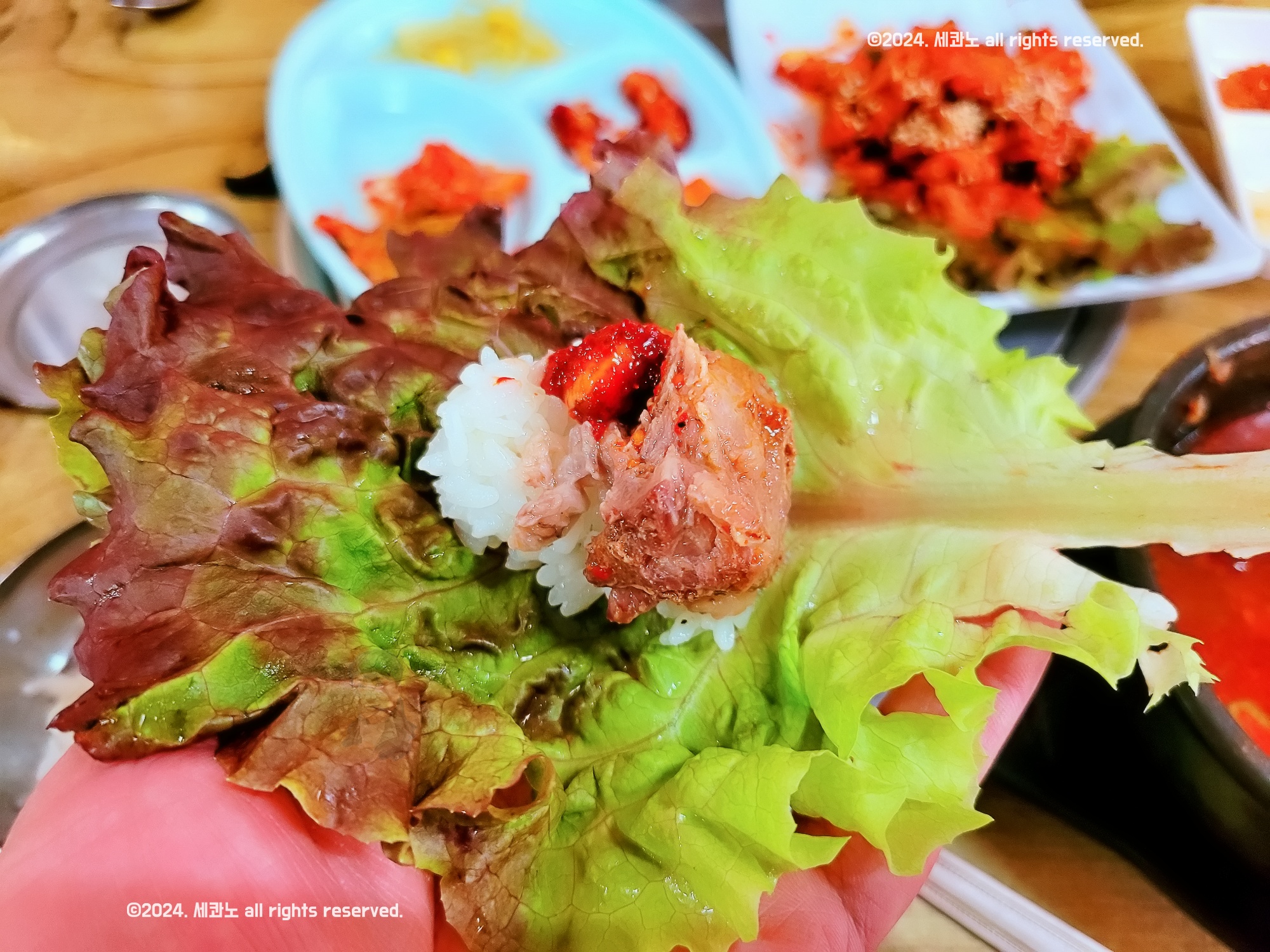 이야, 쌈 싸 먹는 감자탕 참 맛있는