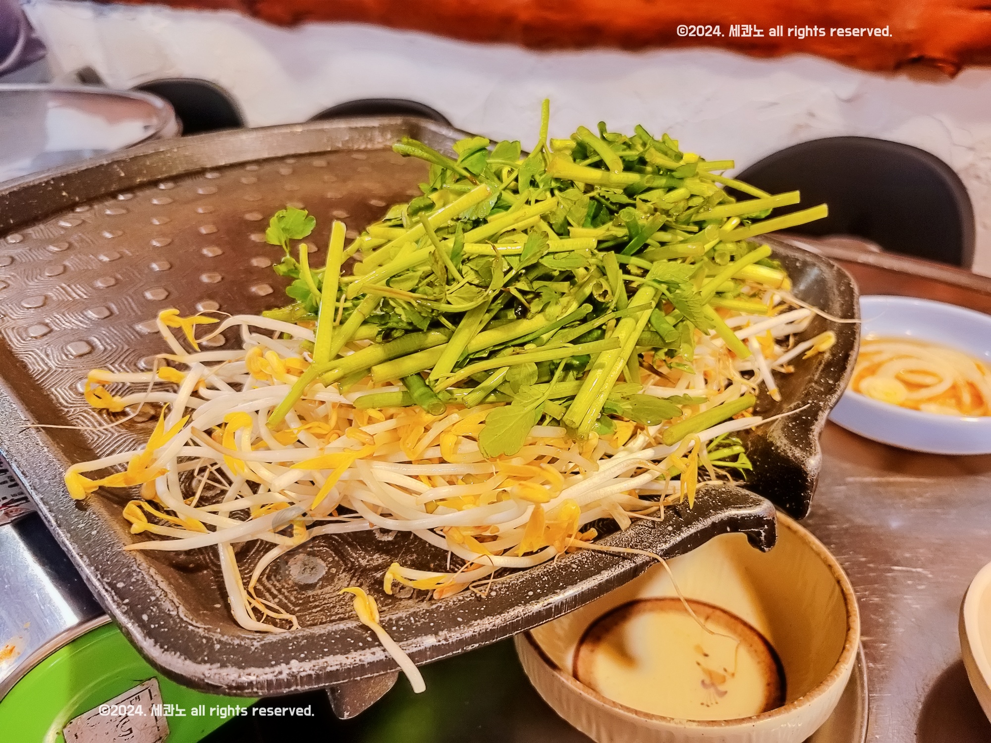 불판 위에 아주 살짝만 구워 아삭함을 살리는 것이