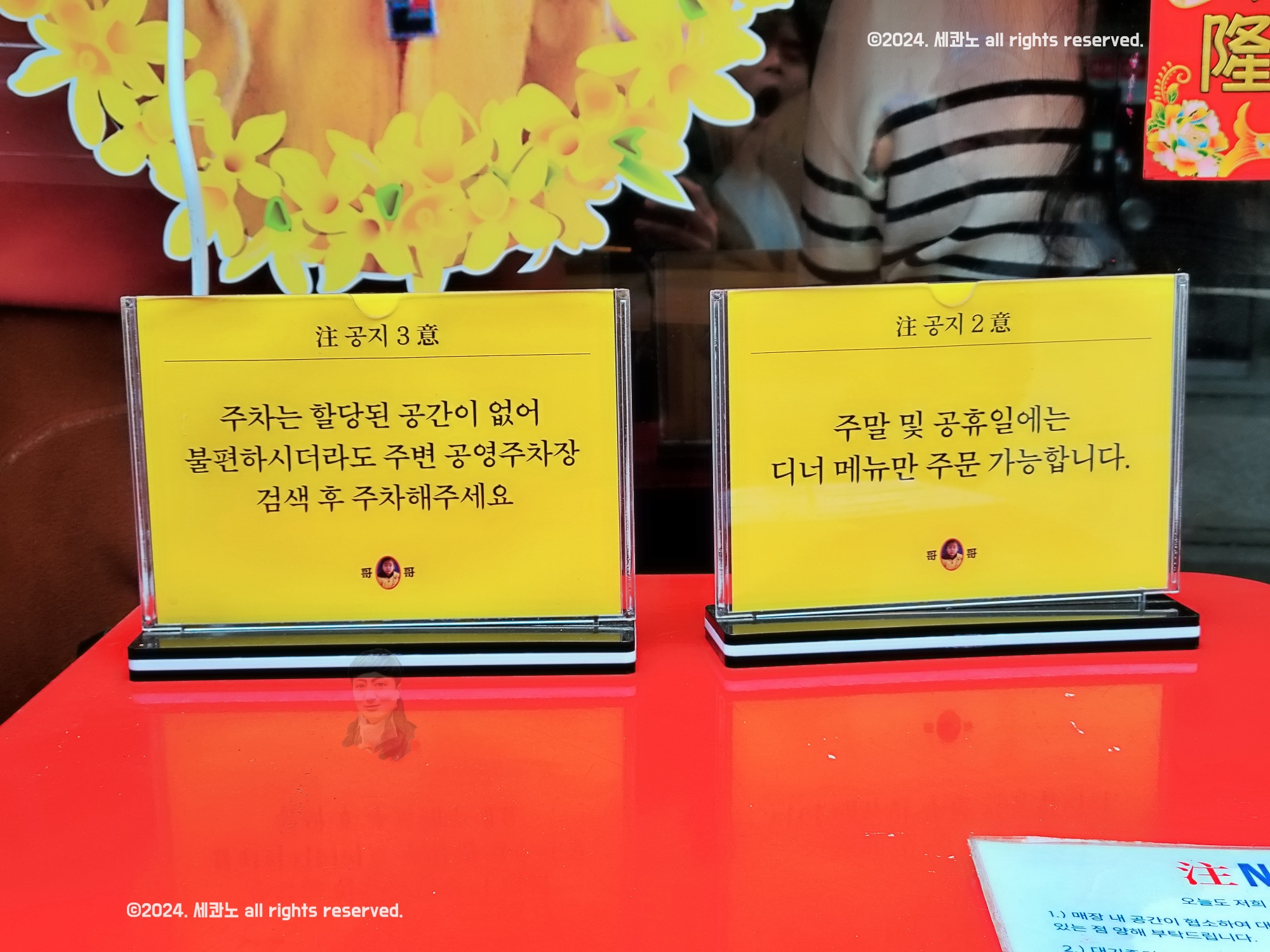 주말 및 공휴일에는 디너 메뉴만 주문 가능하다.