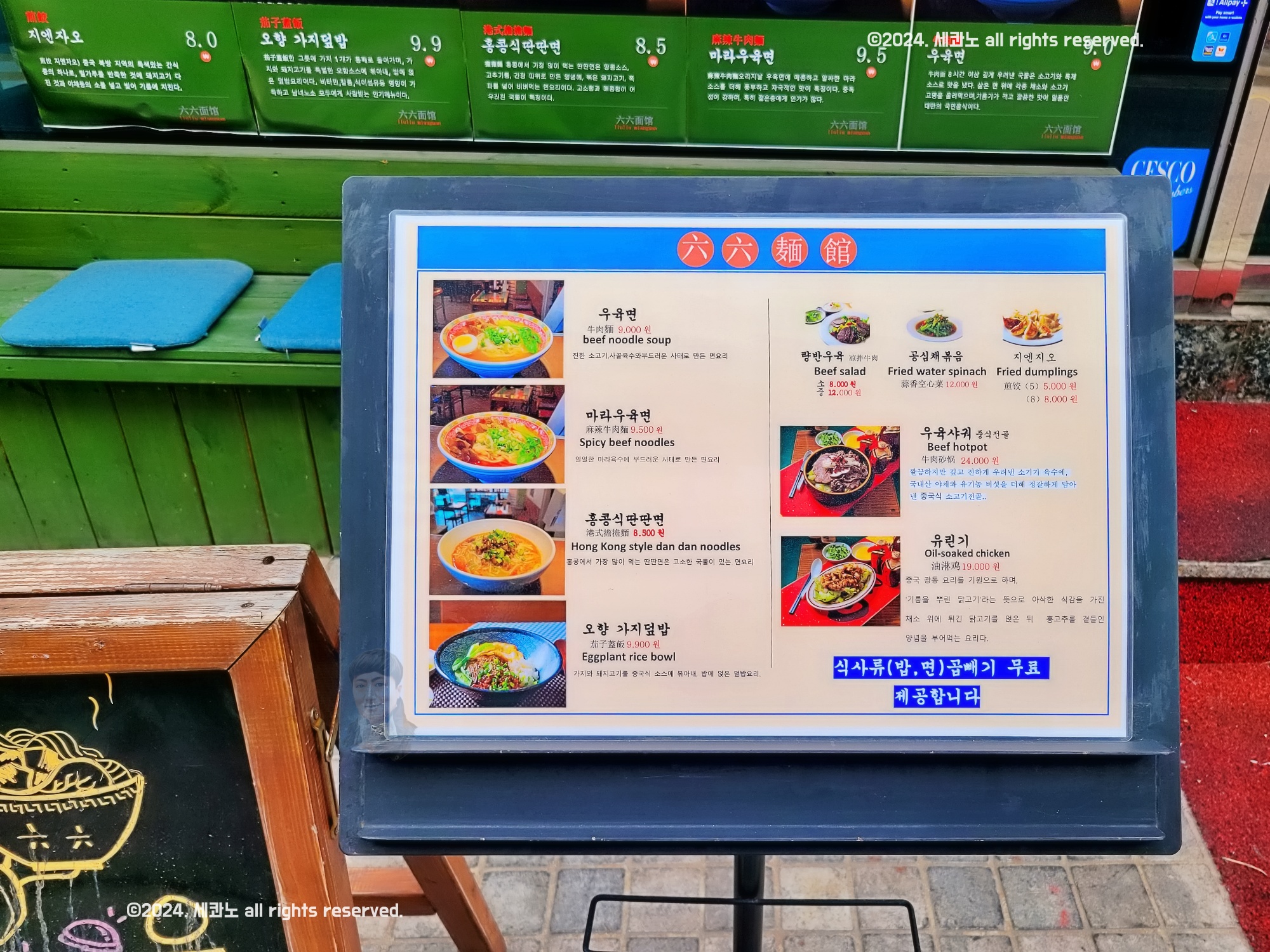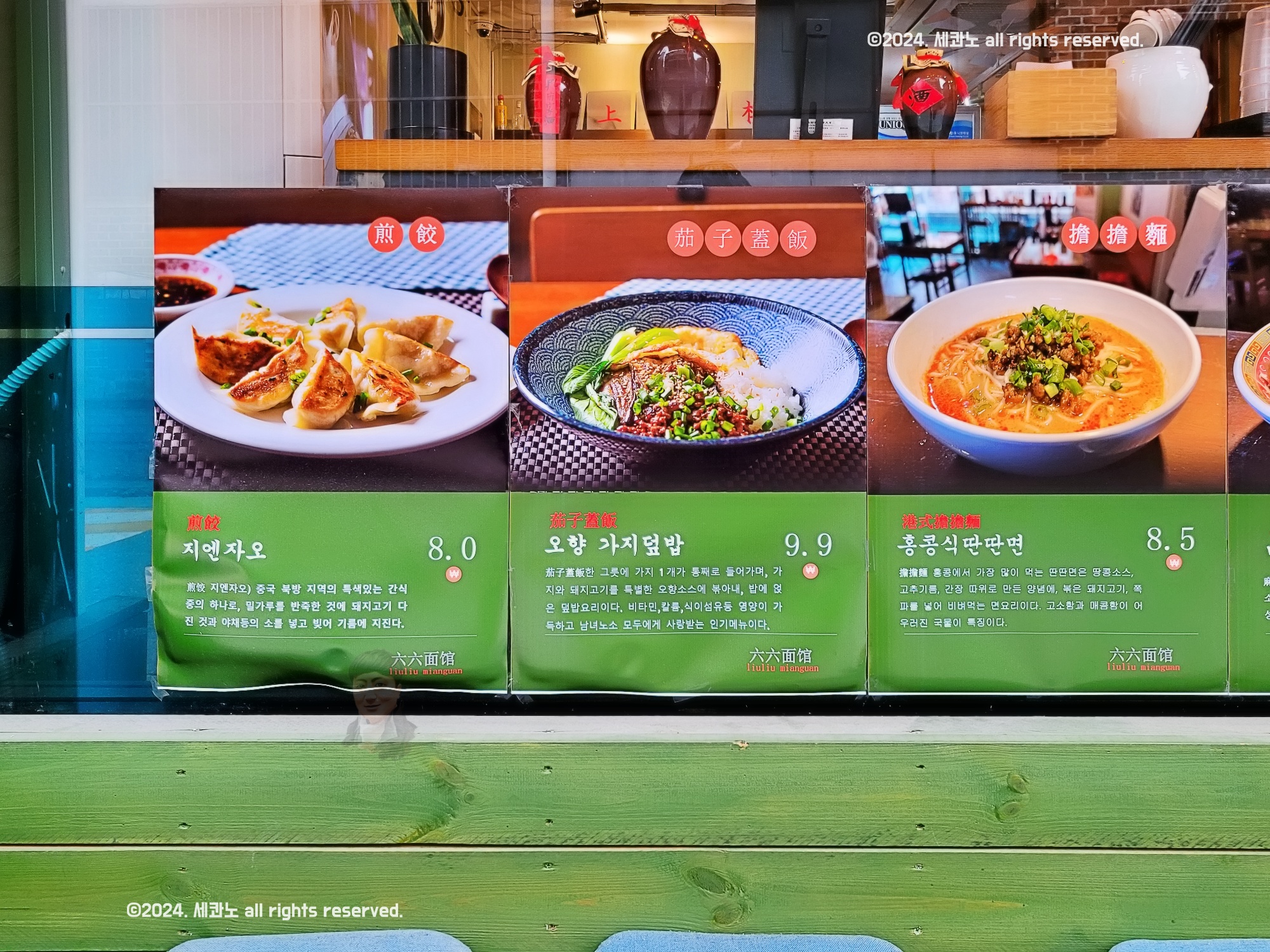 통창에 메뉴 설명이 붙어 있었으니
