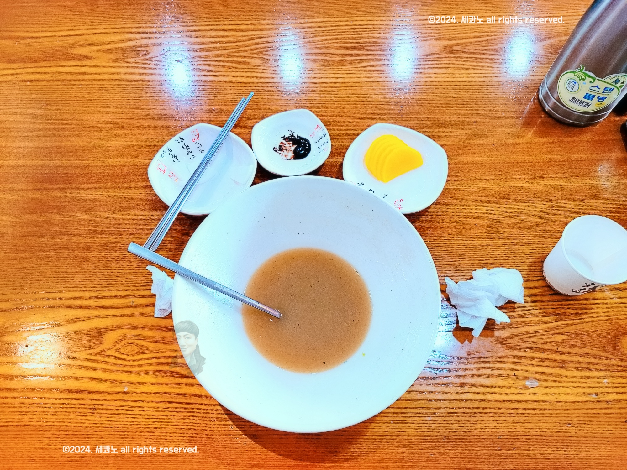 그릇을 들고 국물을 드리킹한