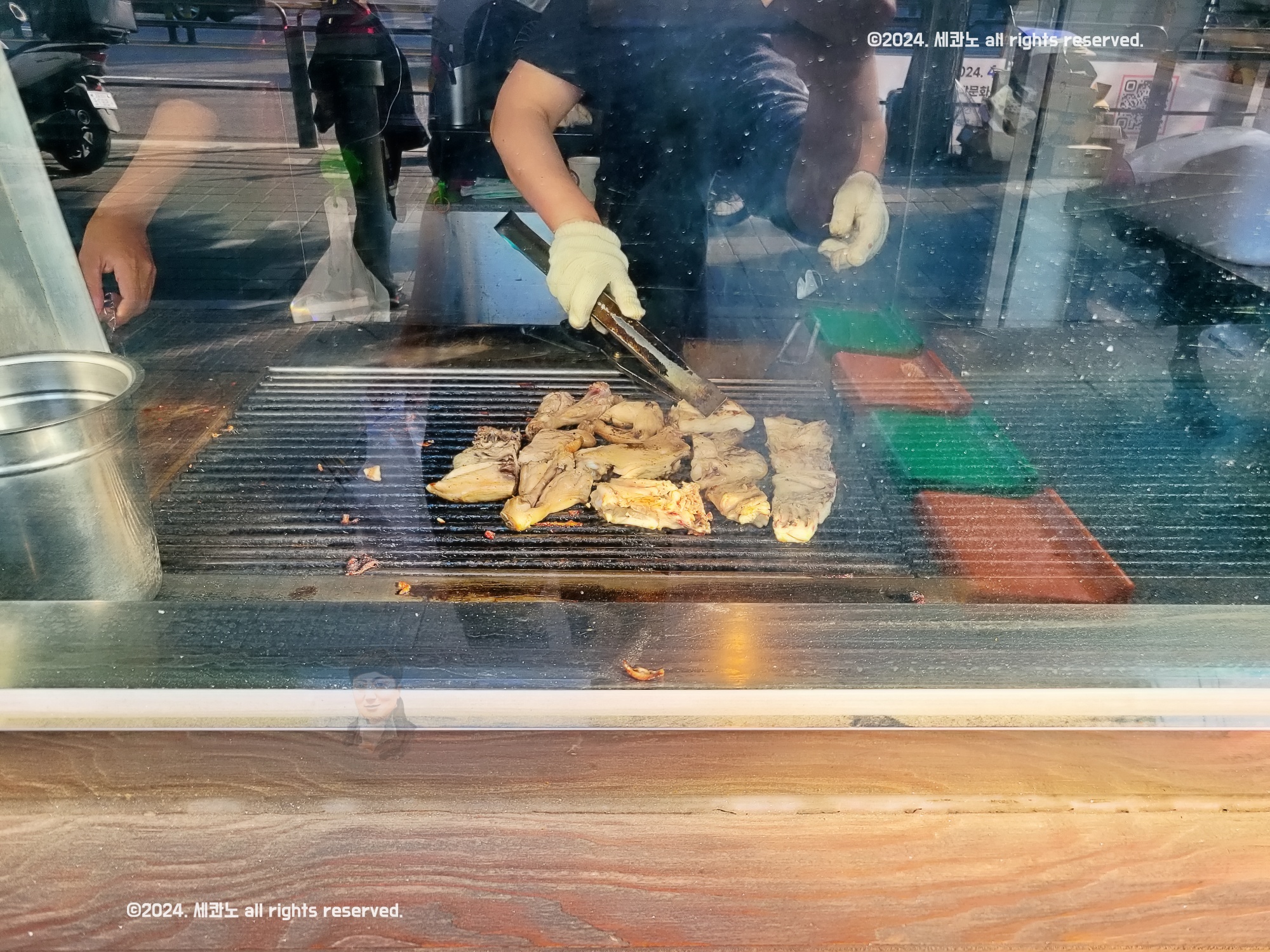 숯불 위에서 불향 잘 입혀지고 있는 걸