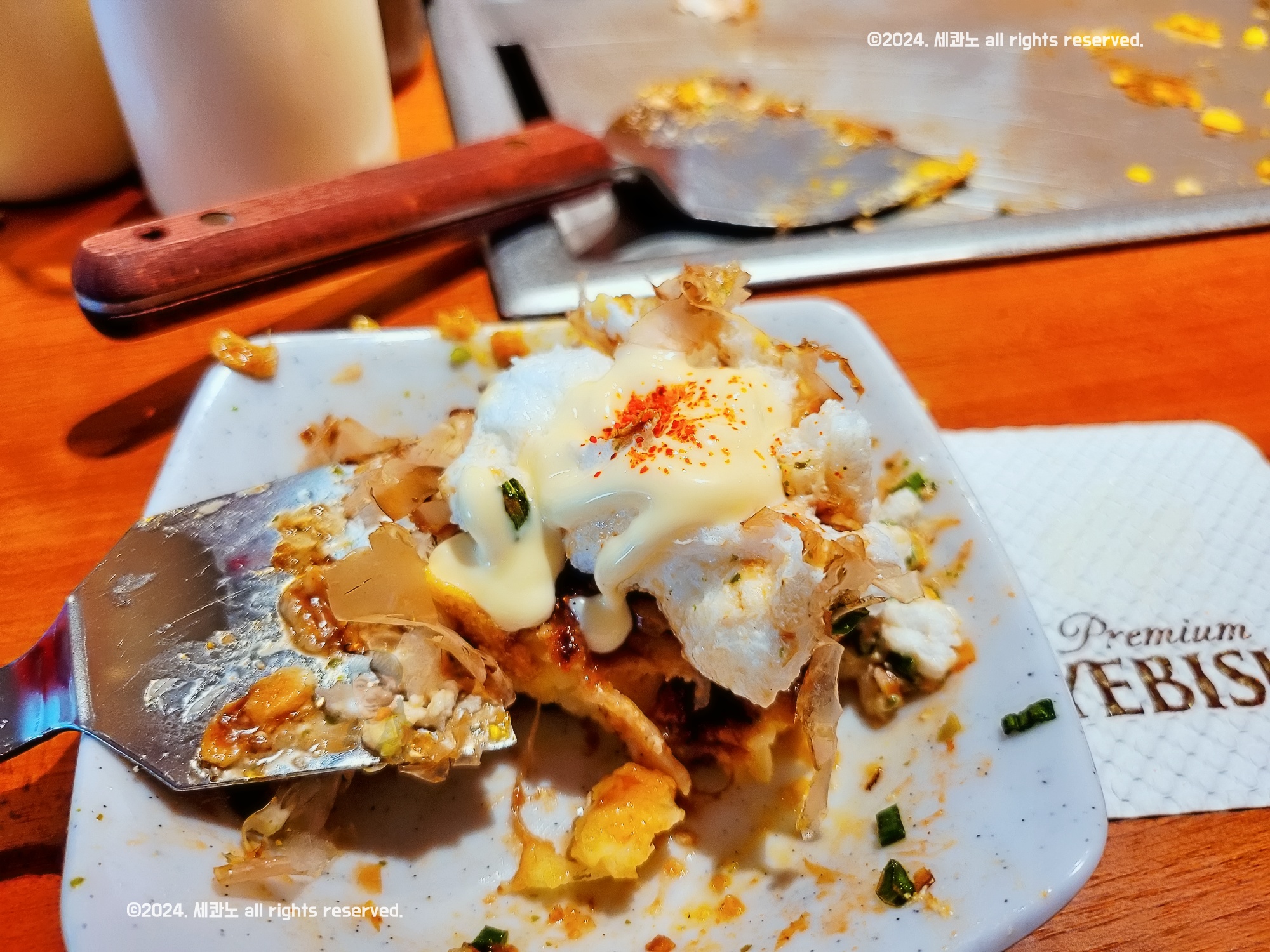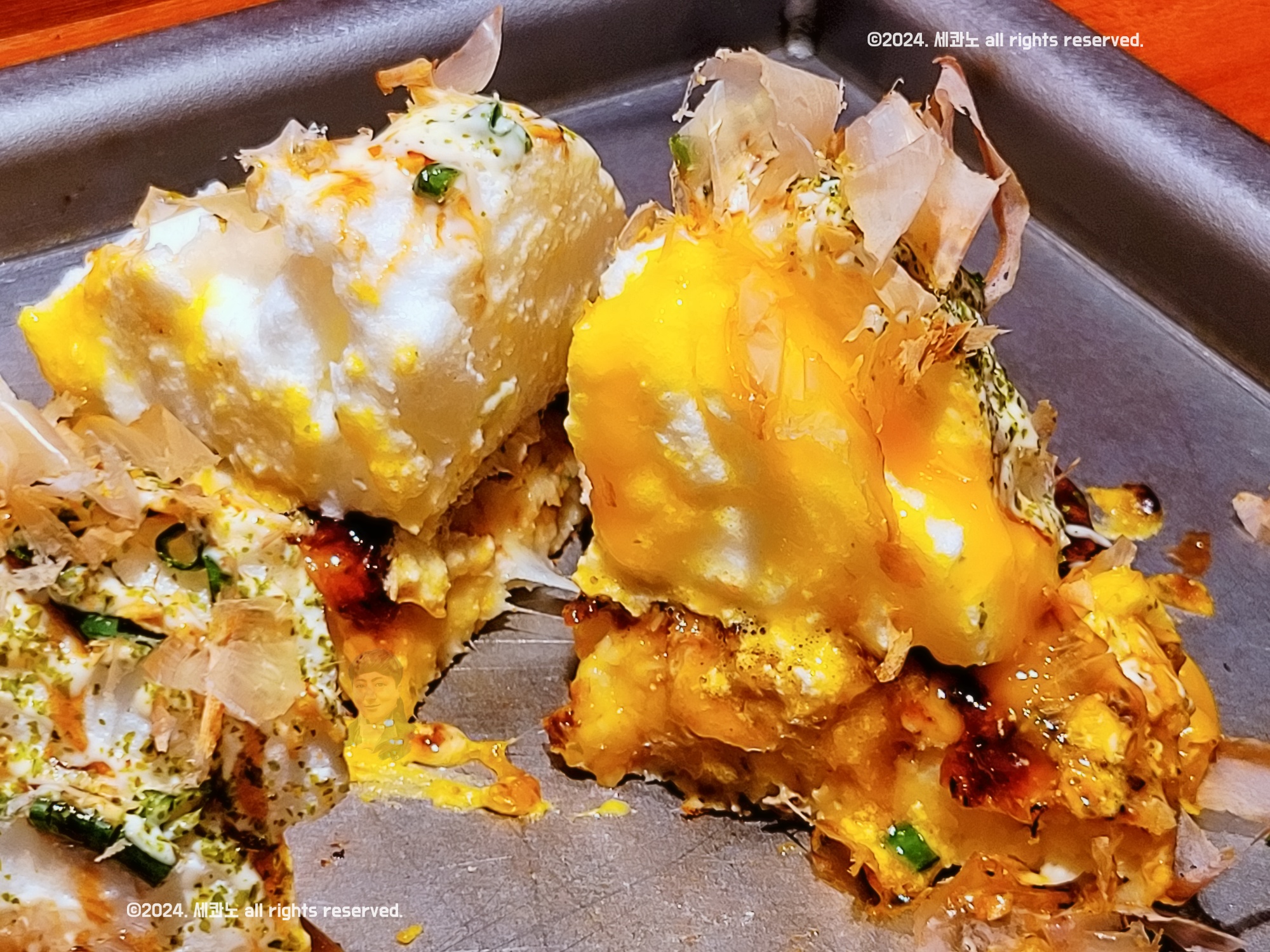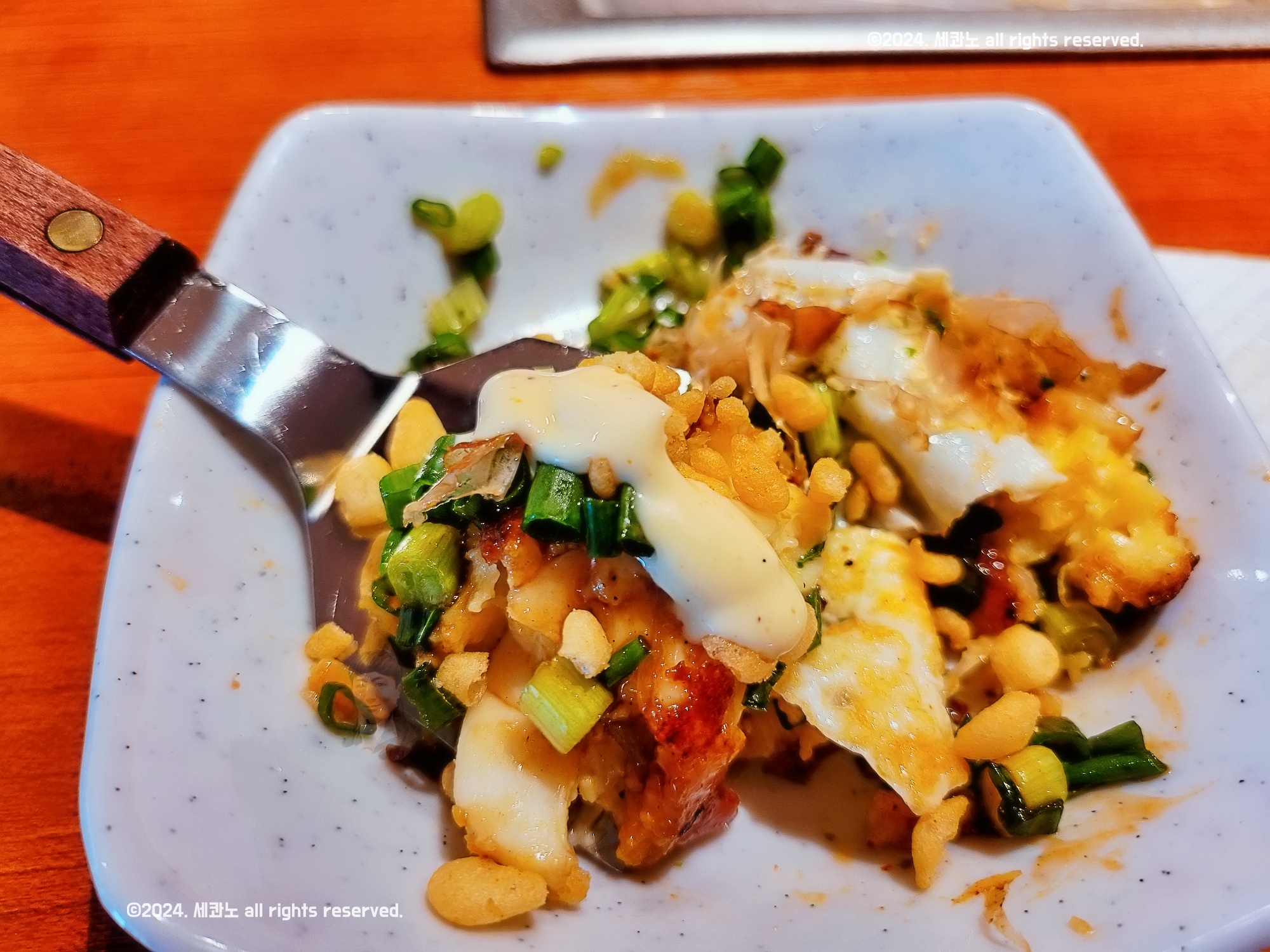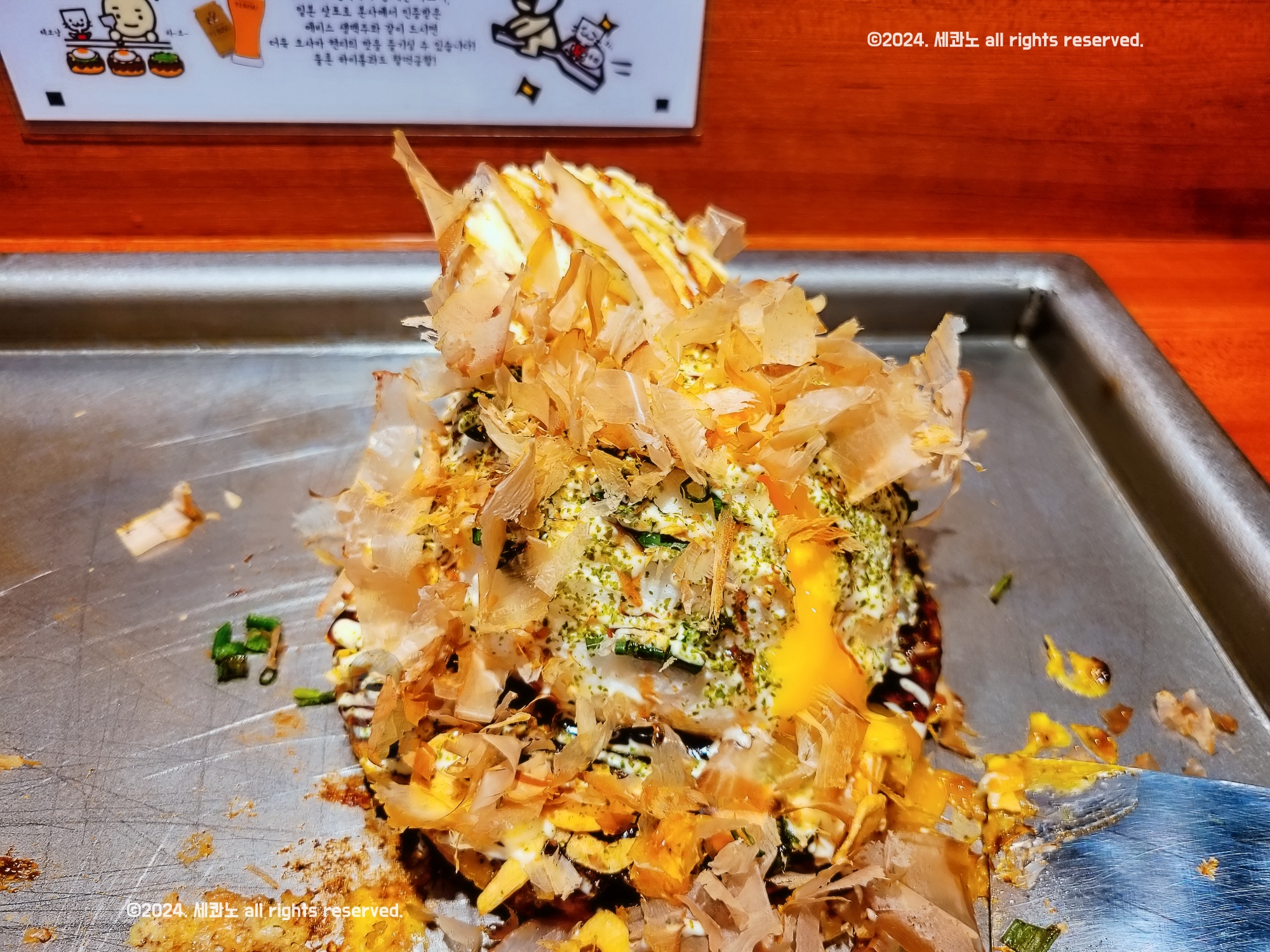 마요네즈와 가츠오부시 등을 뿌린 뒤