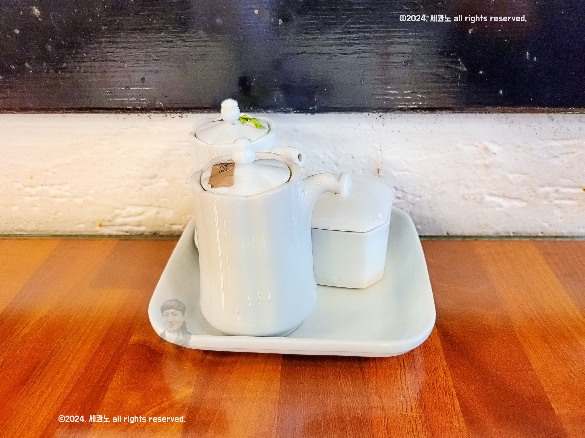 테이블에 미리 세팅된 고춧가루와 간장, 식초