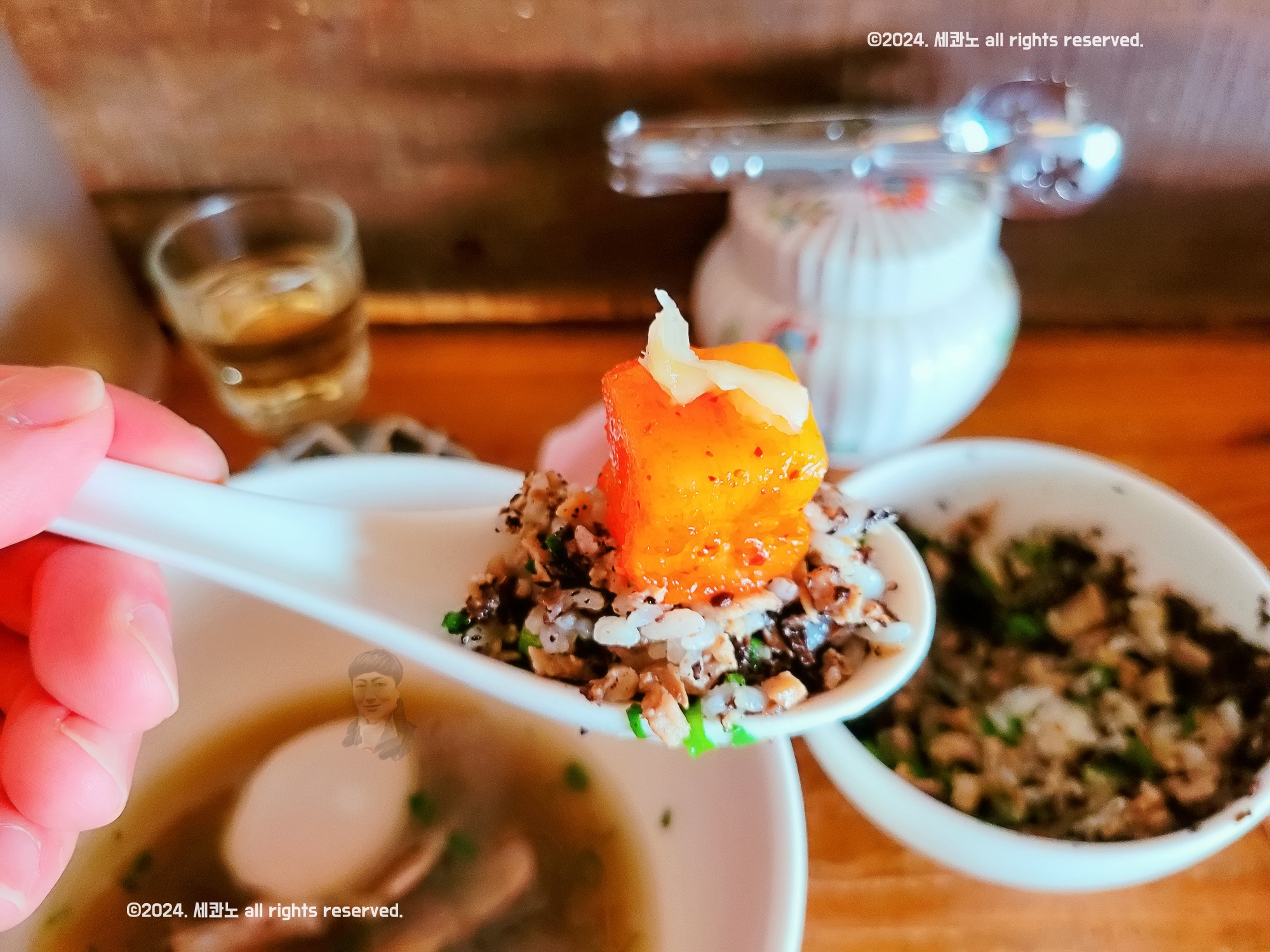 서빙할 때, 잘 섞어서 먹으라고 안내해 준다.