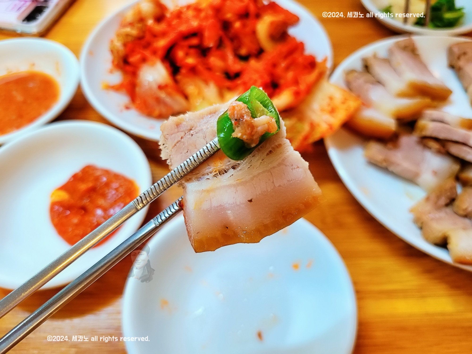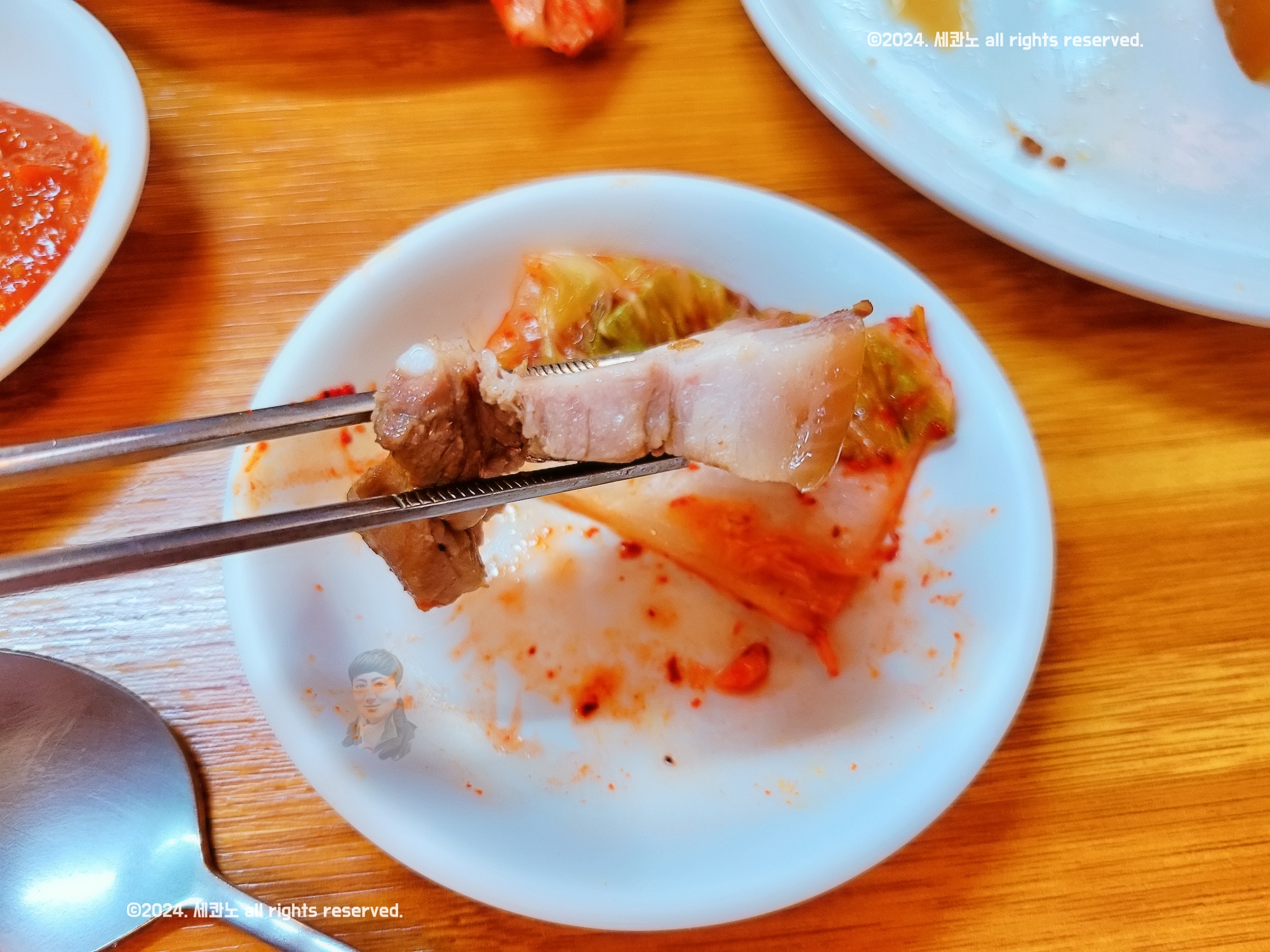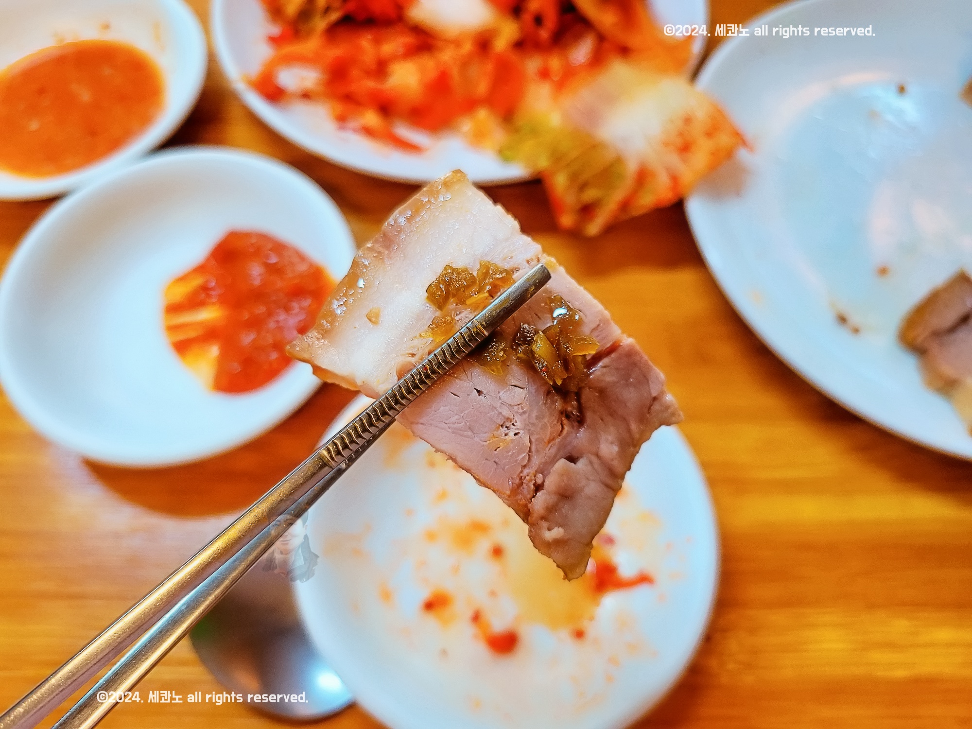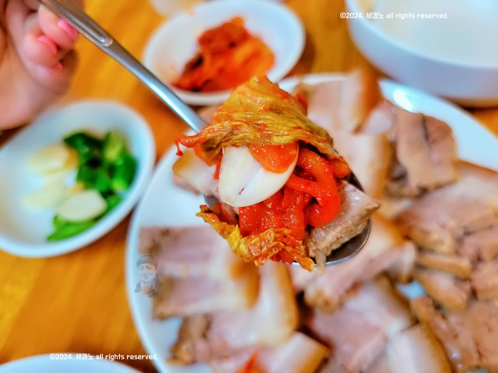 어찌되었든 김치, 수육, 편마늘까지 한 입하면