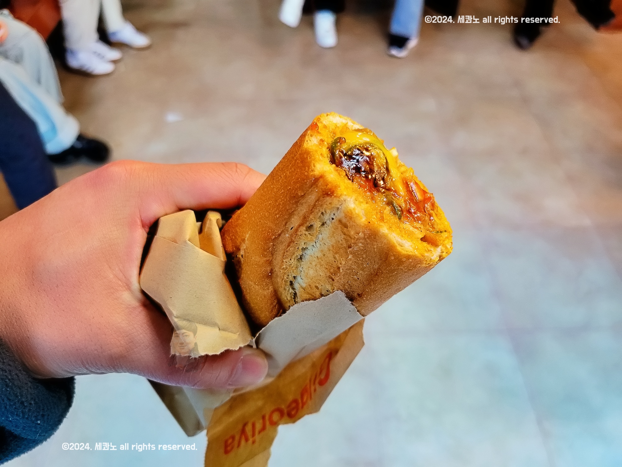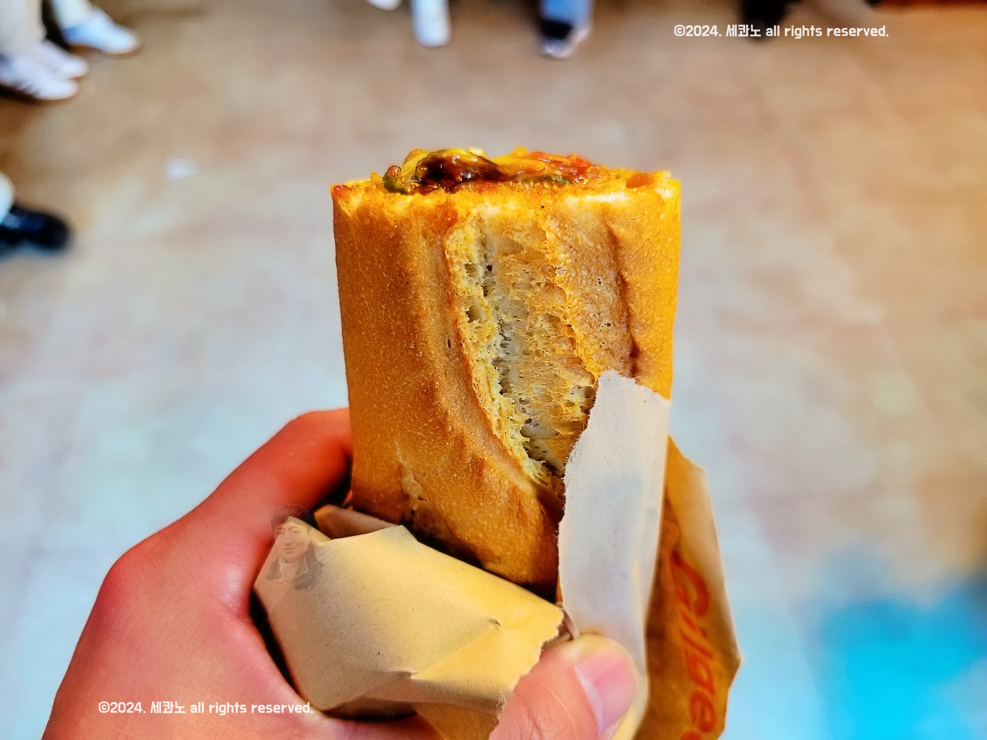 '랩'의 밀 전병을 바게뜨로 바꾼 느낌.
