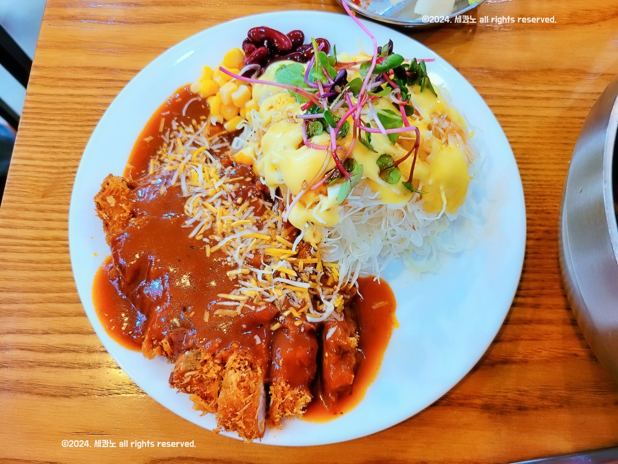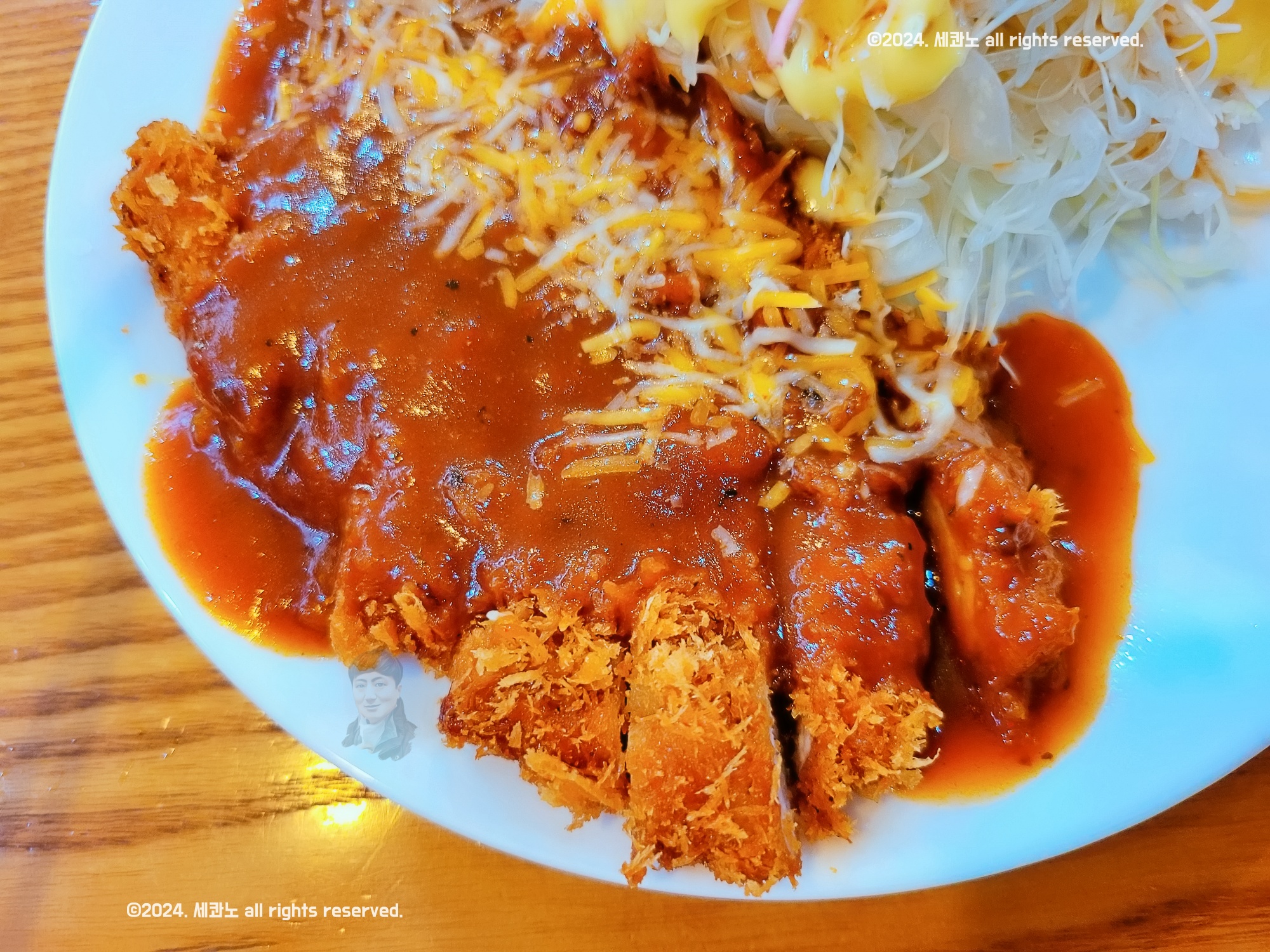 모두 커팅된 후 소스 가득 뿌려 나왔다.