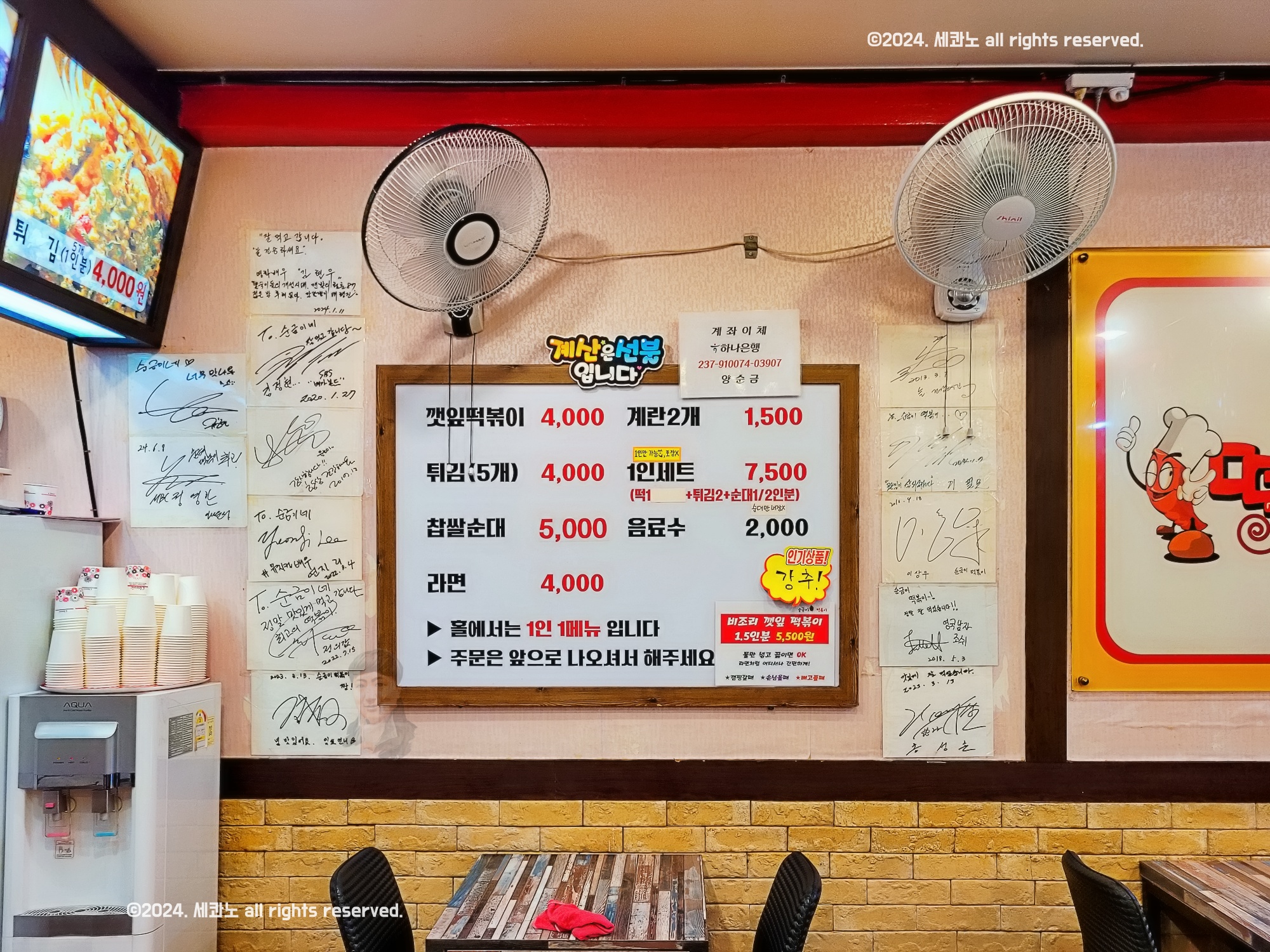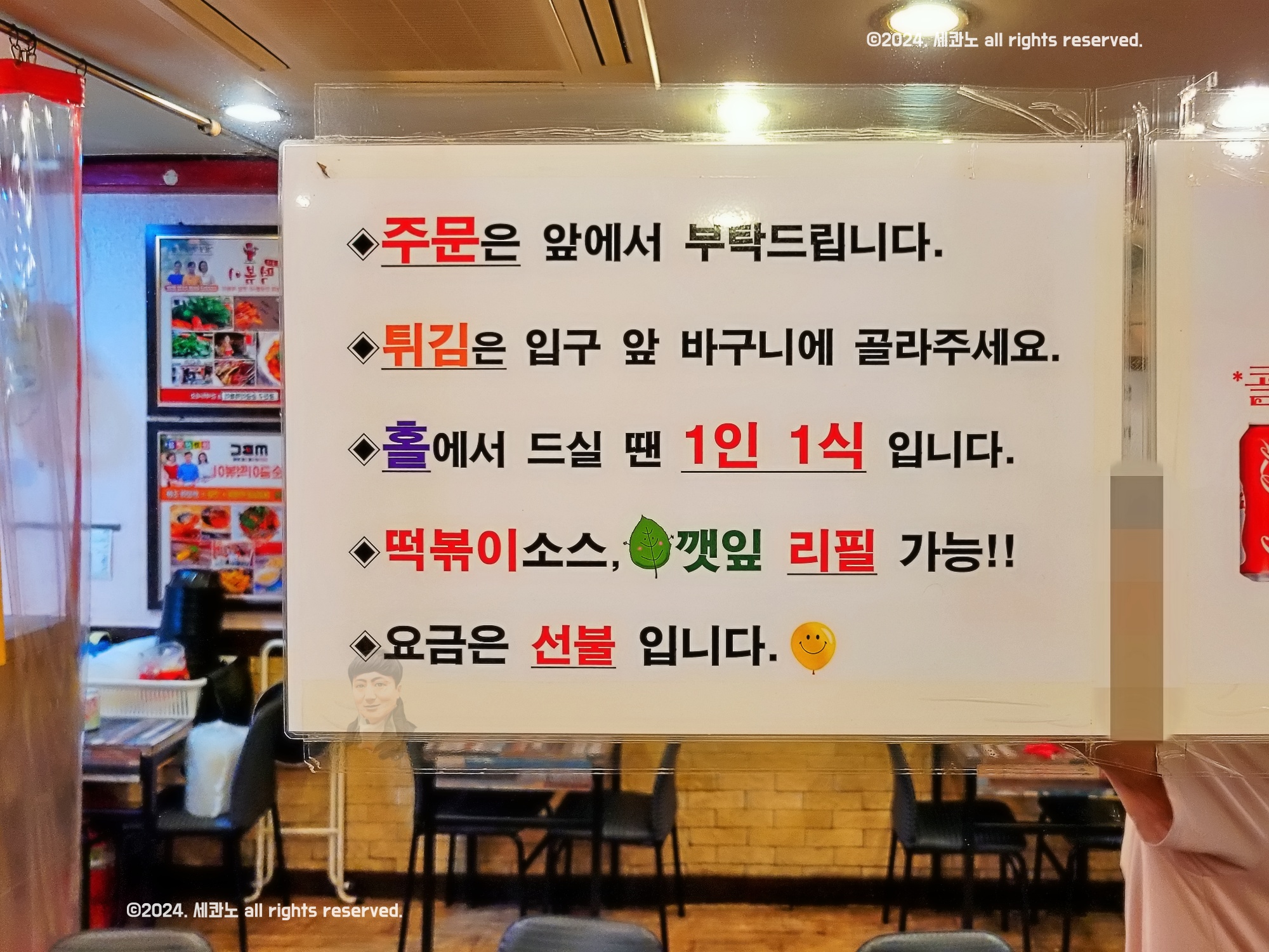 홀에서 드실 땐 1인 1식입니다.