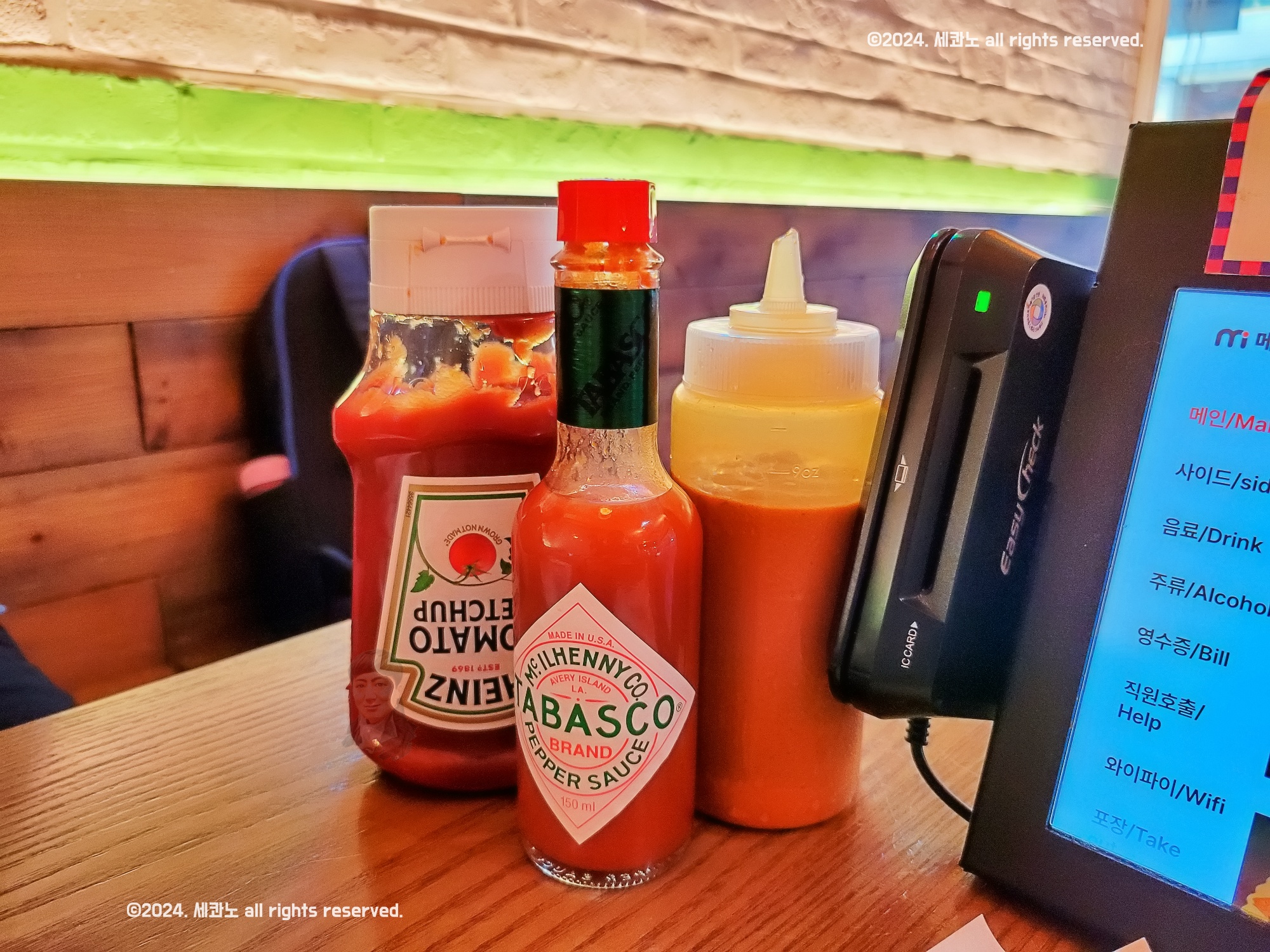 일반적인 타파스코 핫소스와 케찹과 더불어