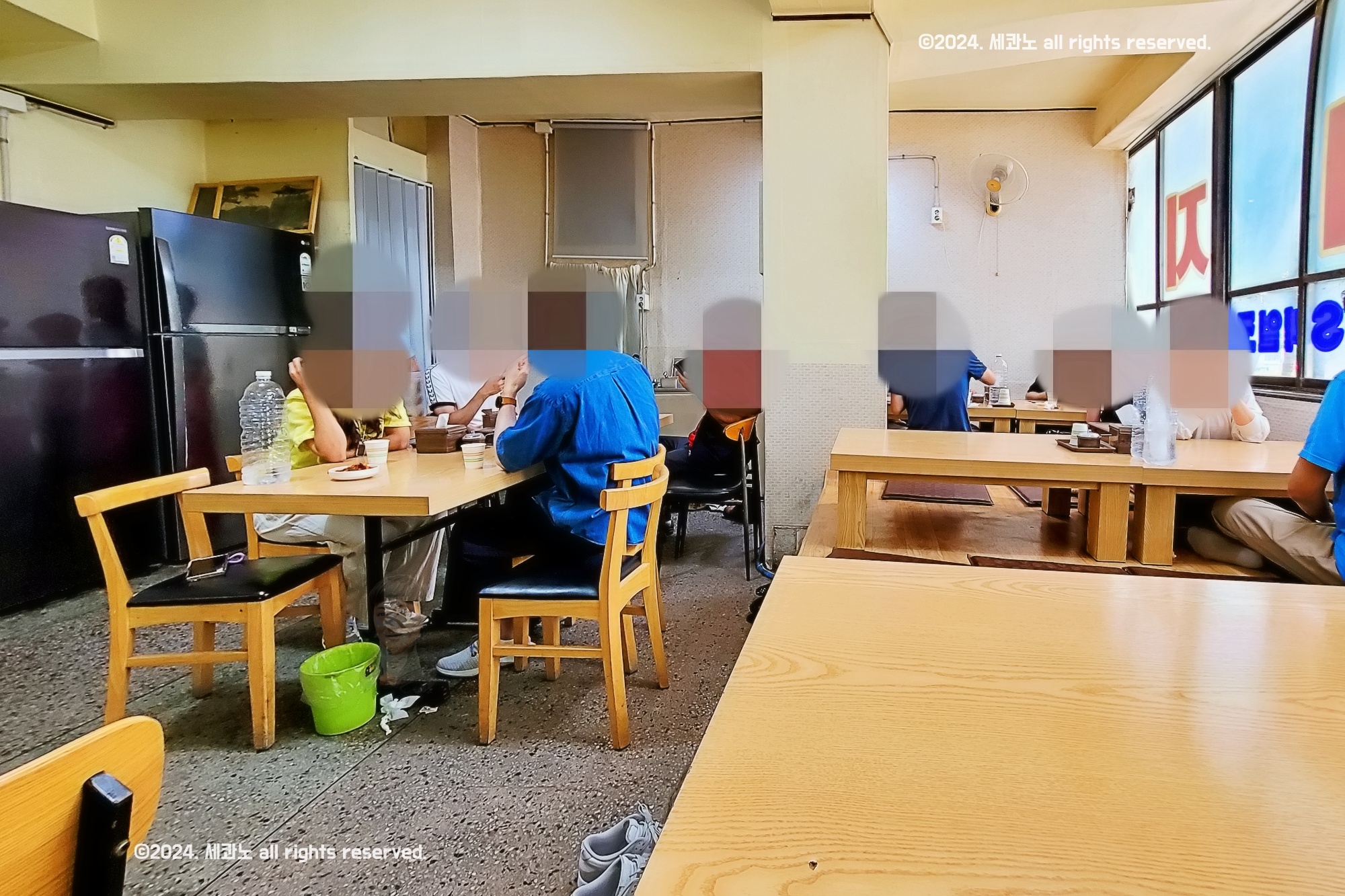좌식 테이블과 입식 테이블이 섞여 있는데