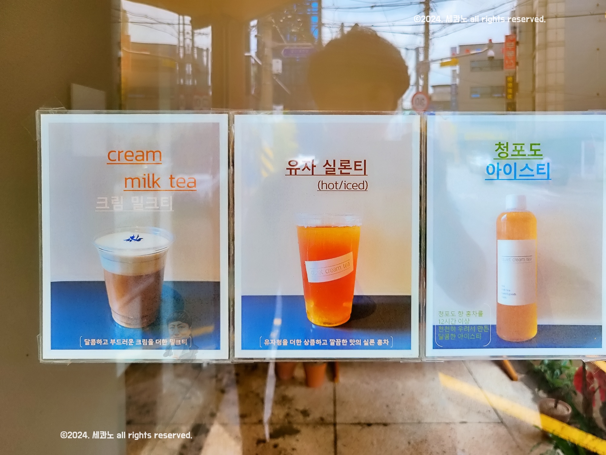 대표메뉴 : 오리지널 스콘 4,300원. 밀크티 7,500원