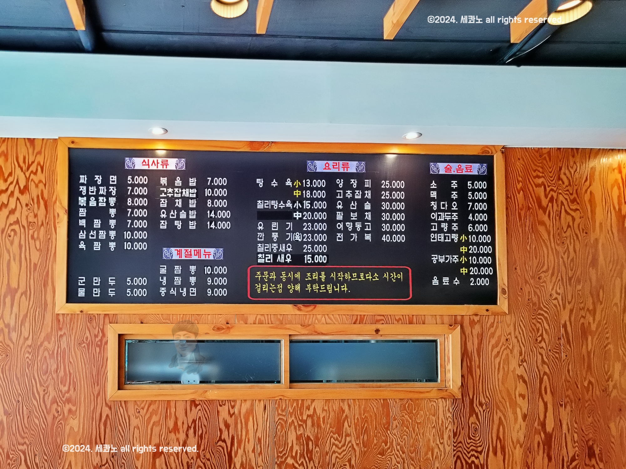 대표메뉴 : 짜장면 5,000원. 볶음짬뽕 8,000원. 탕수육 소 13,000원.