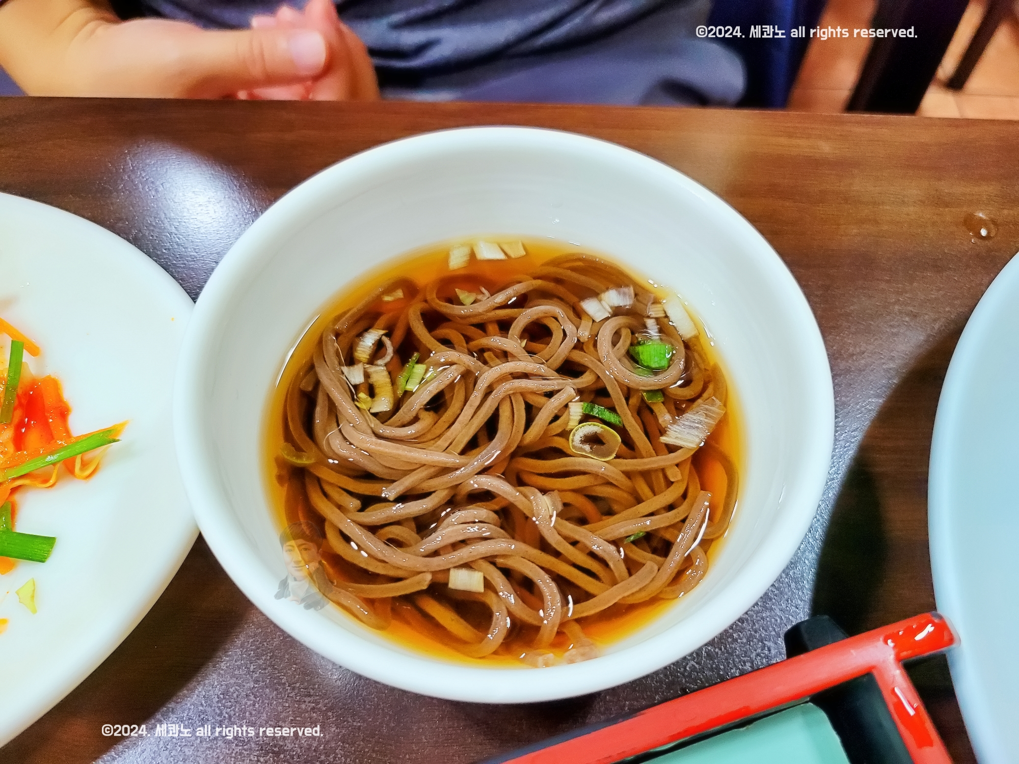 시원한 장국에 메밀국수를 한껏 말아 먹는 것으로 식사를 마무리하는 것이 이 집의 식사 전통.