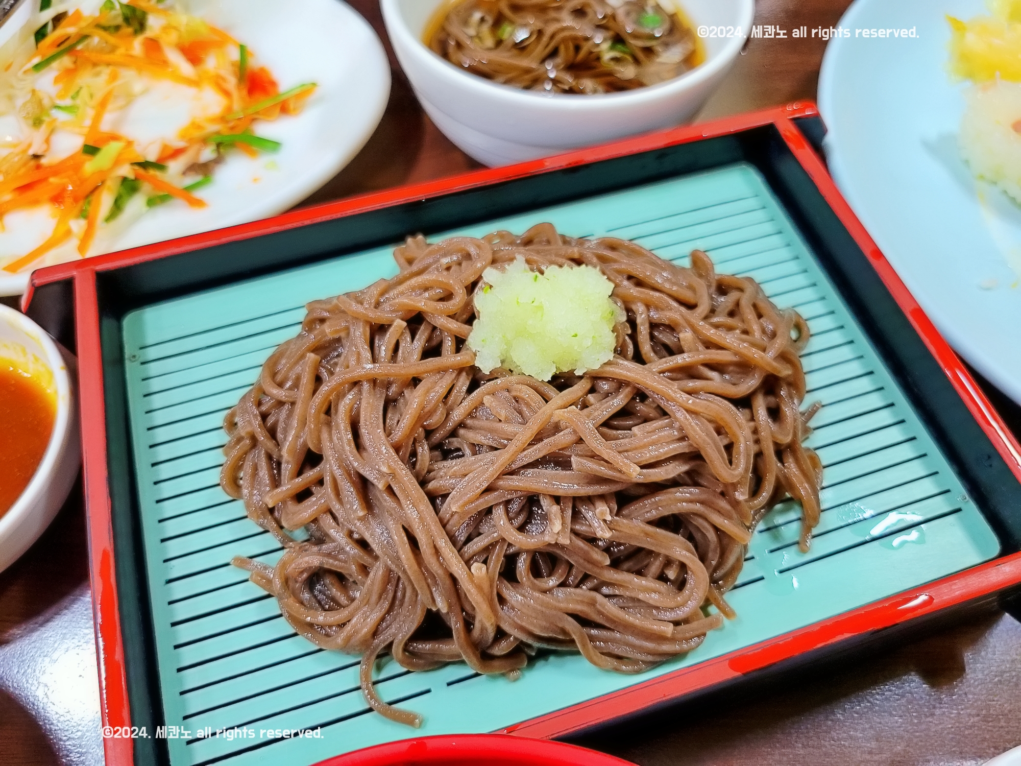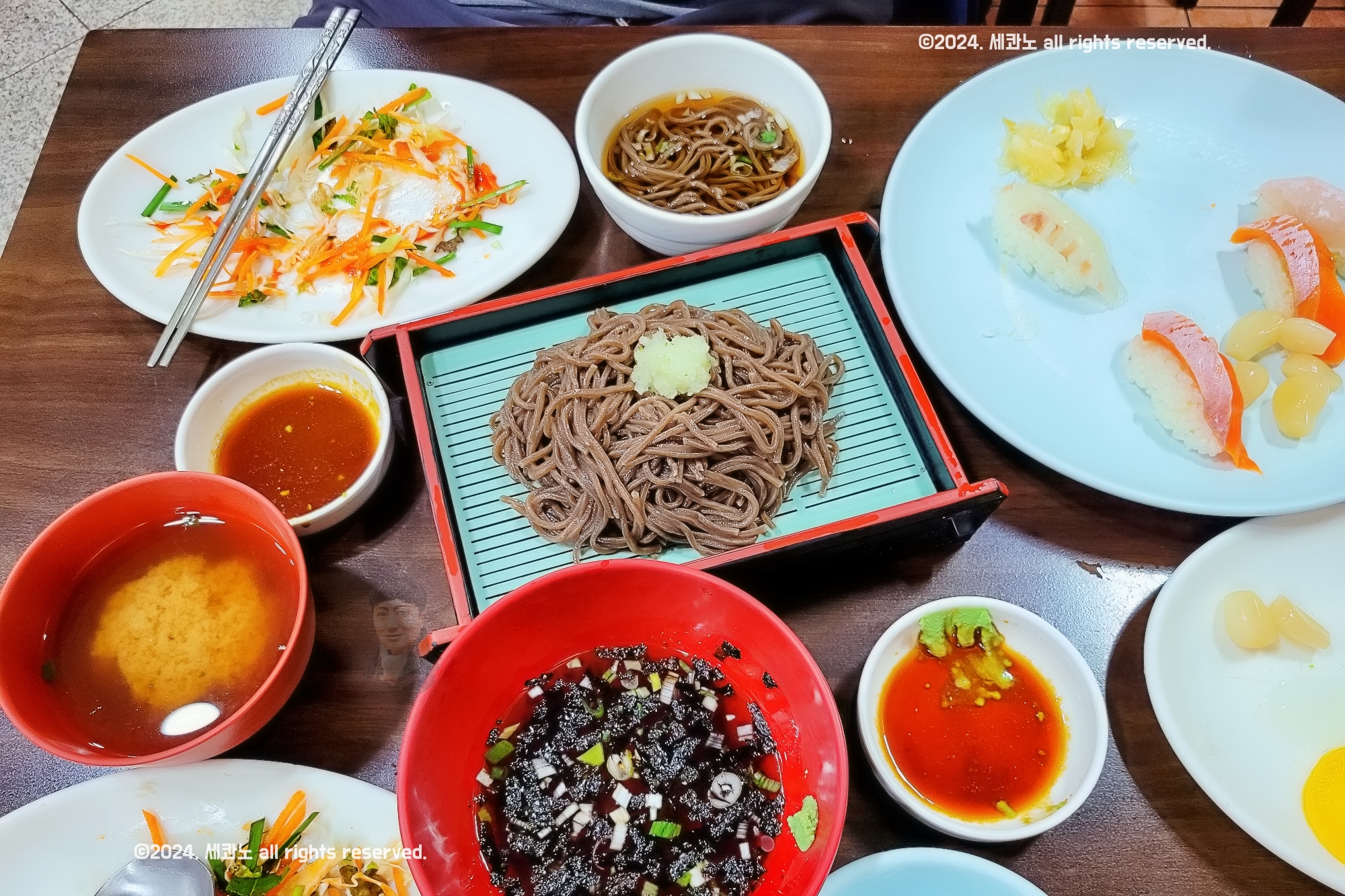 오늘 점심, 광어+연어초밥과 모밀정식을 시켰다.