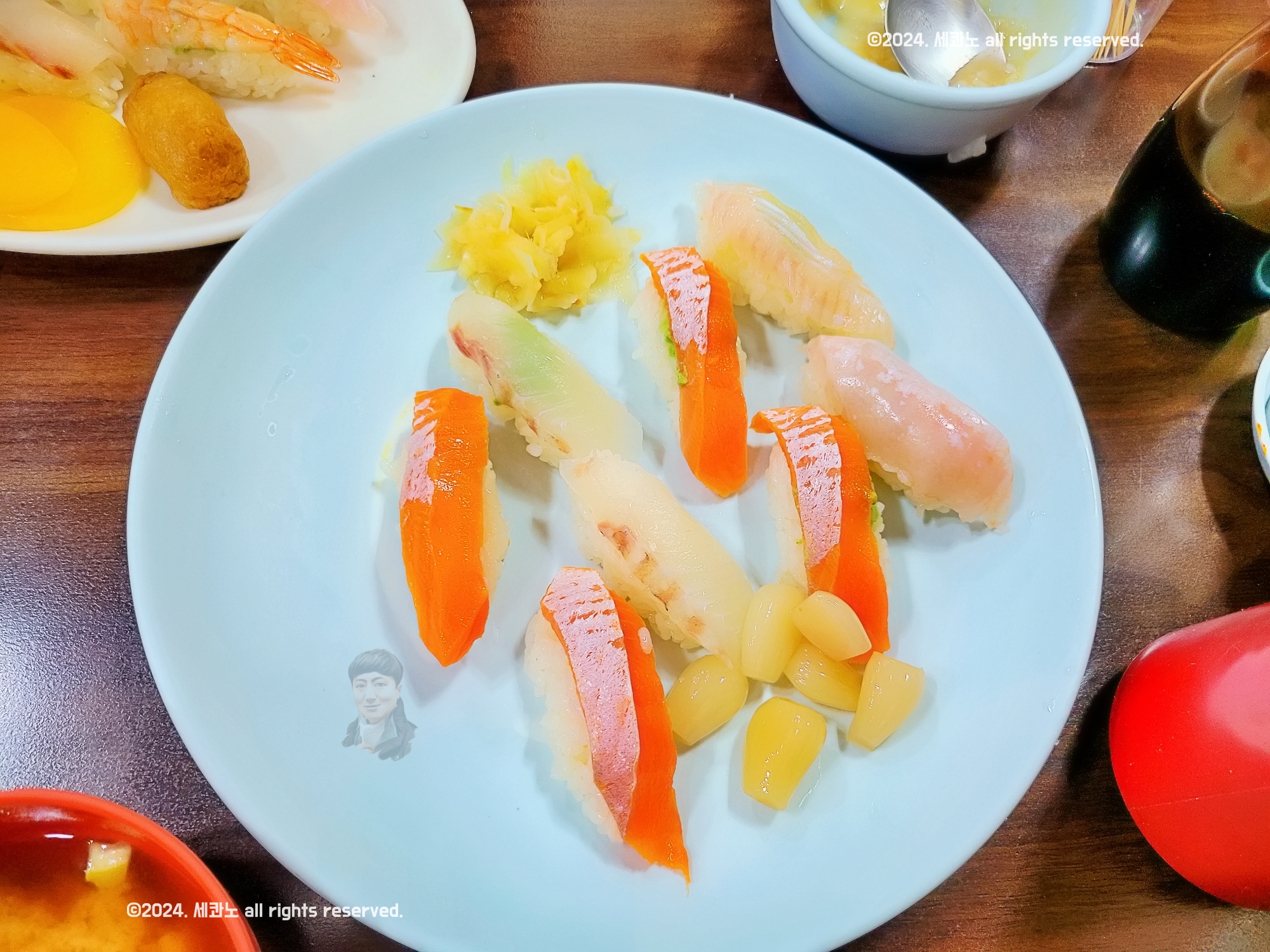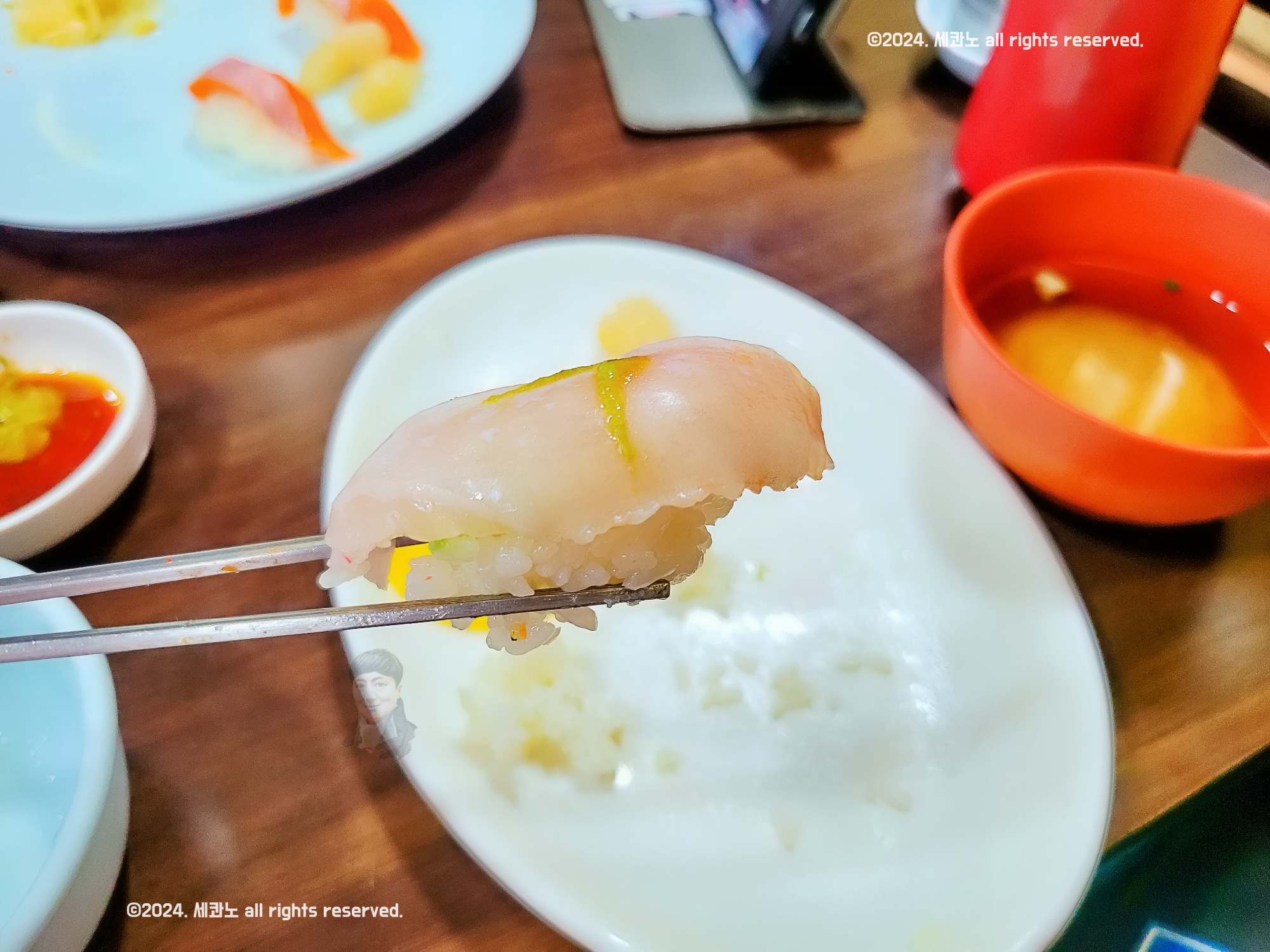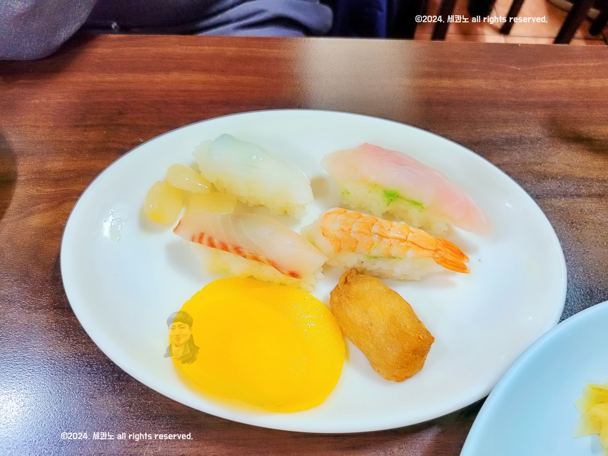 광어, 한치, 초새우, 유부, 나머지가.. 돔?
