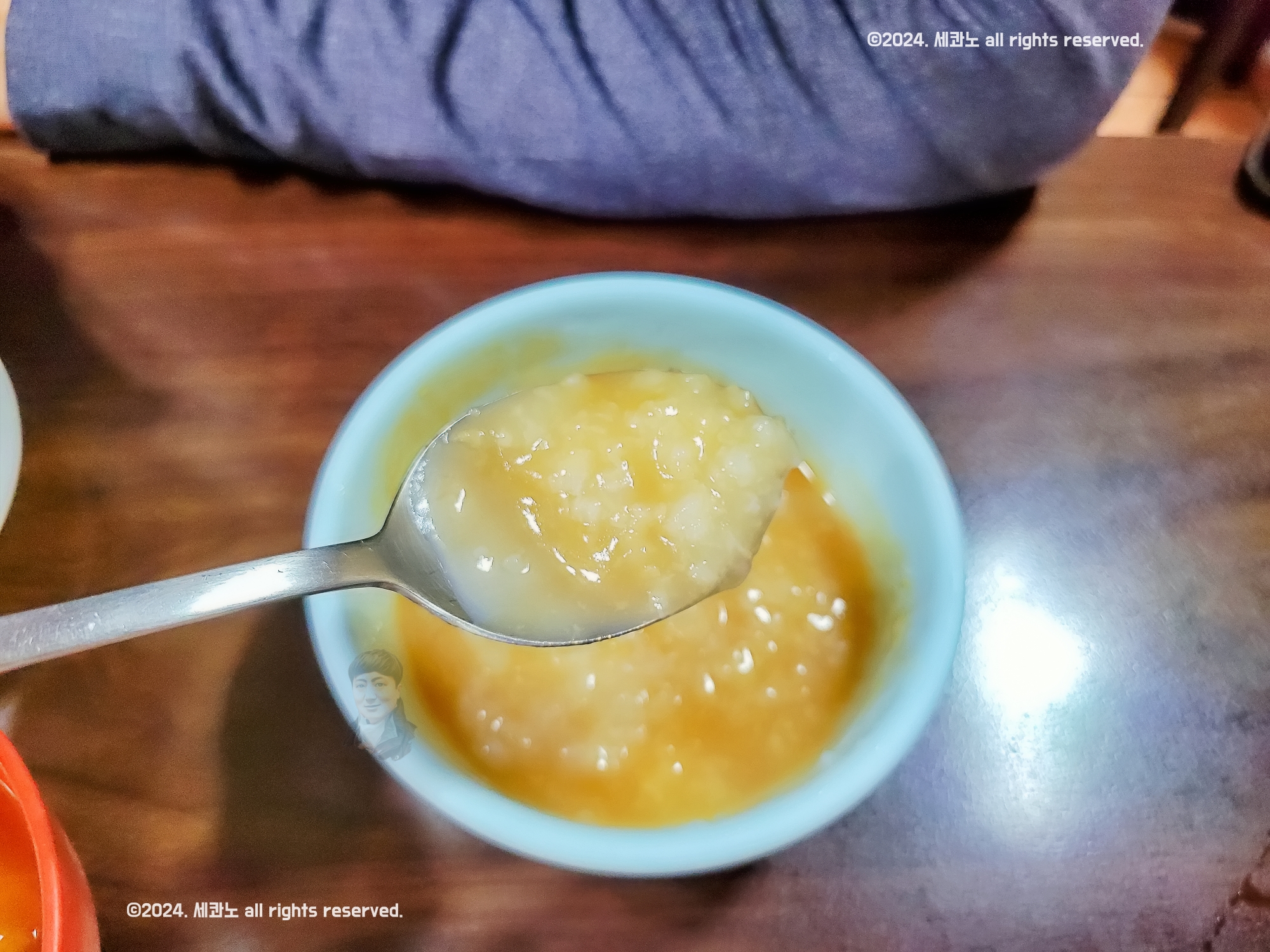 식전에 내어 주는 참치 죽은 허한 속을 든든하게 채워 준다는데.