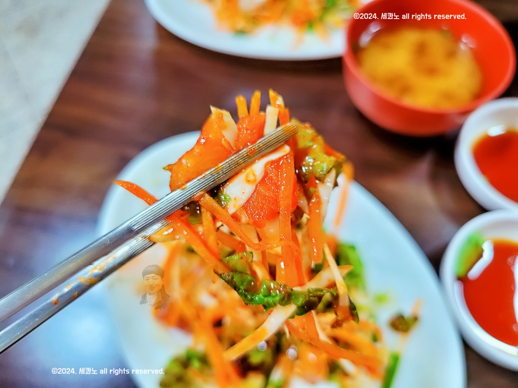 새콤달콤한 초장을 뿌려 무쳐낸 회무침은 입맛을 돋우기에 안성맞춤!