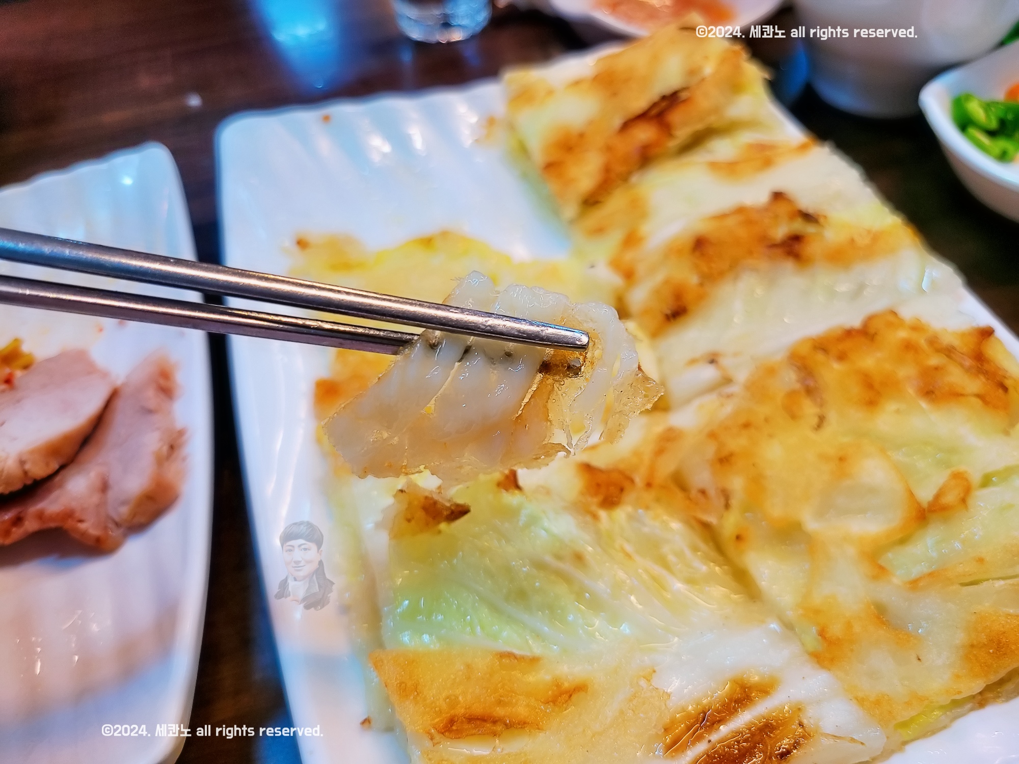 얇으면서 쫀득한 반죽옷을 입혀 구웠다.