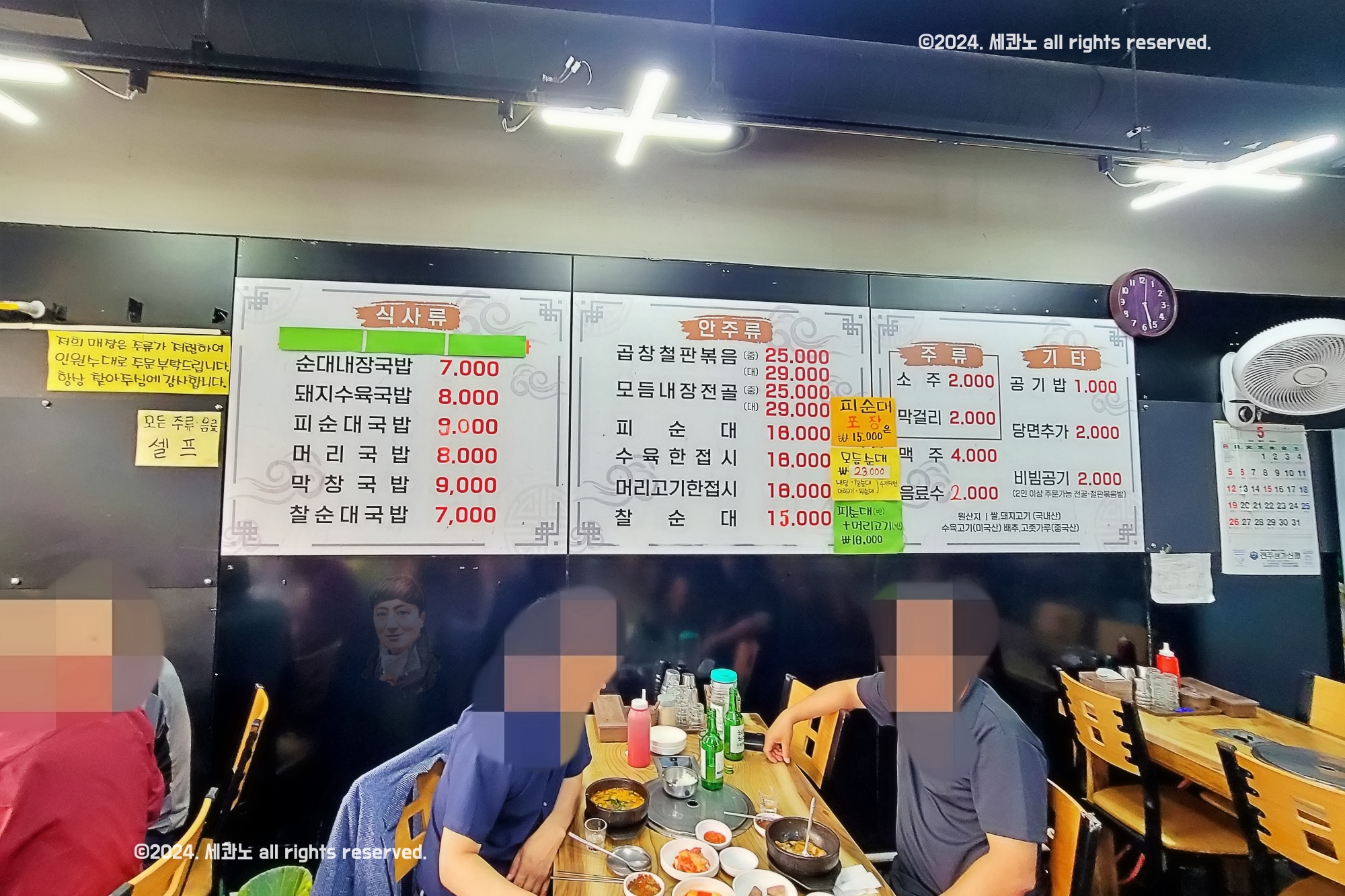 대표메뉴 : 순대내장국밥 7,000원. 피순대 18,000원.