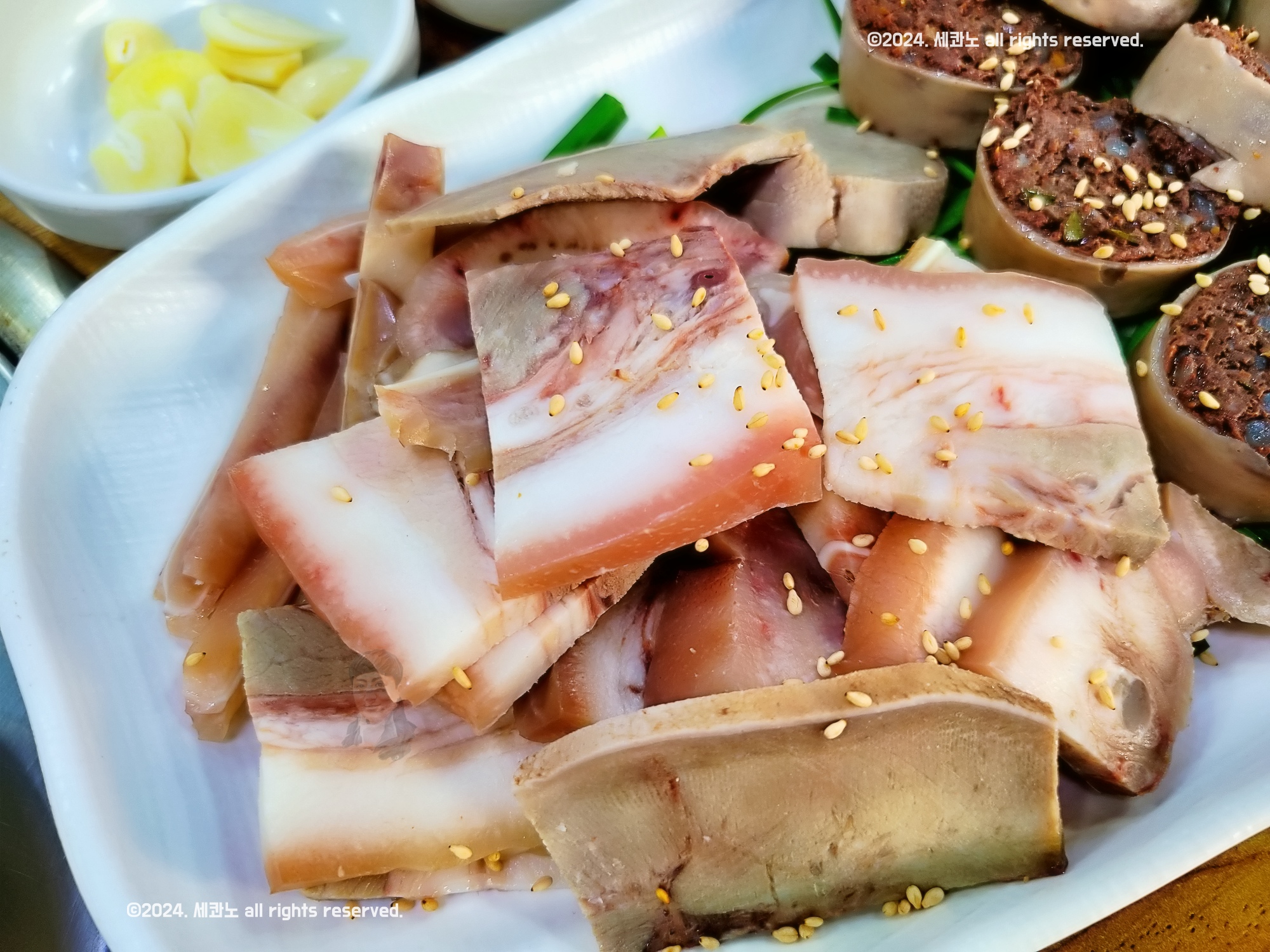18,000원 피순대, 수육 한 접시, 머리고기 한 접시
