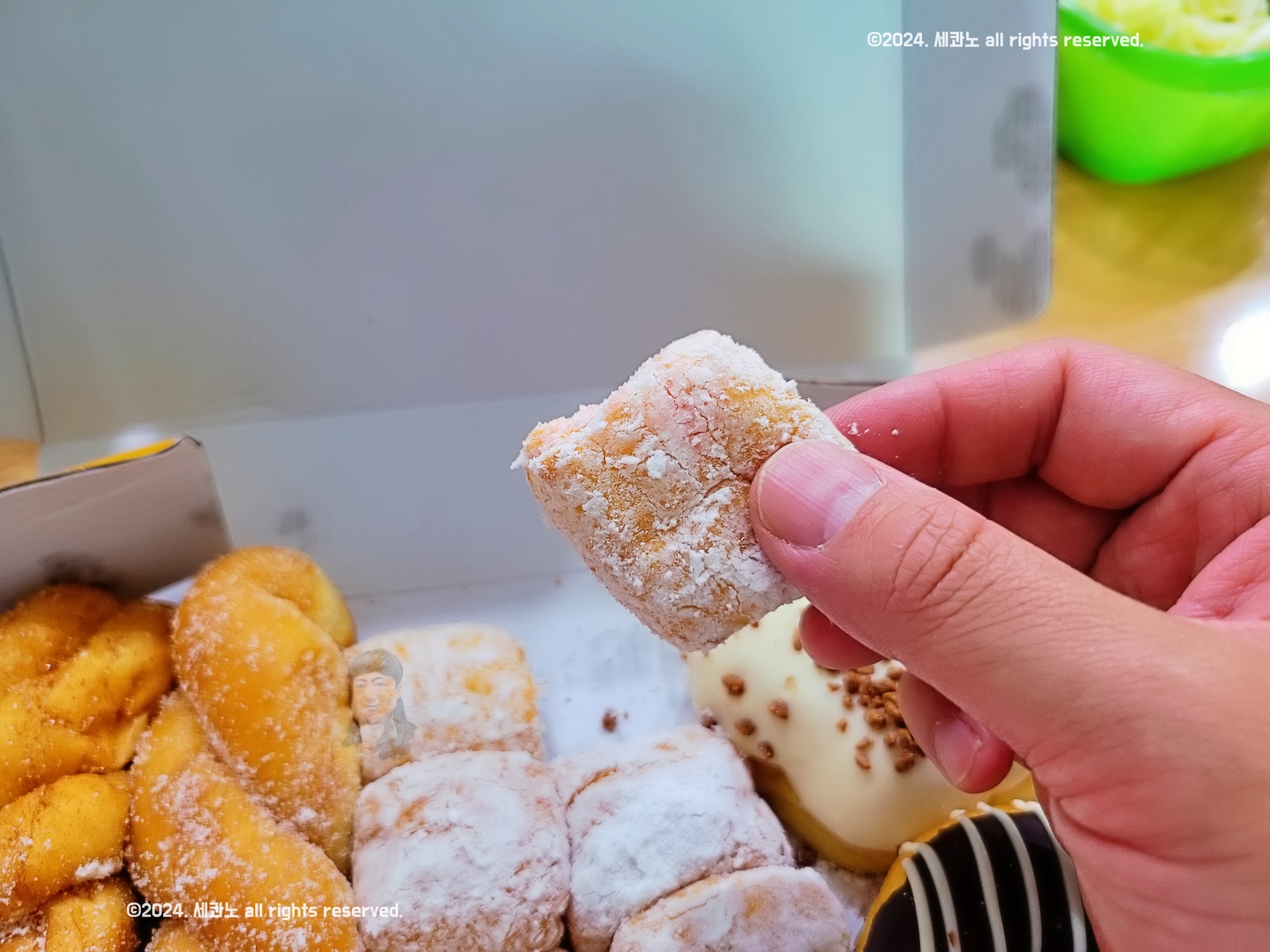 하얀 슈가 파우더가 리저리 떨어지니