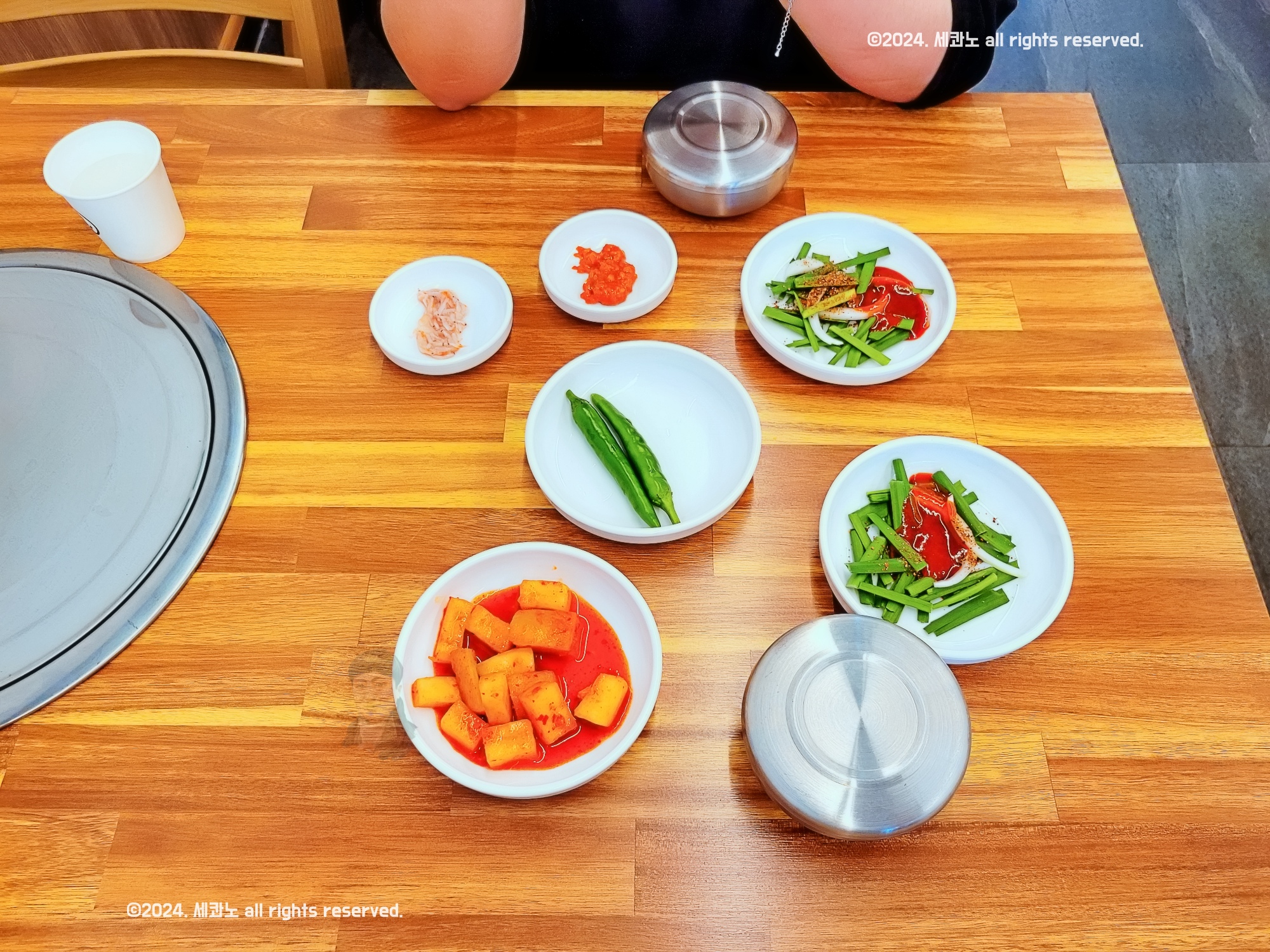 고추, 쌈장, 새우젓, 깍두기가 나왔으니