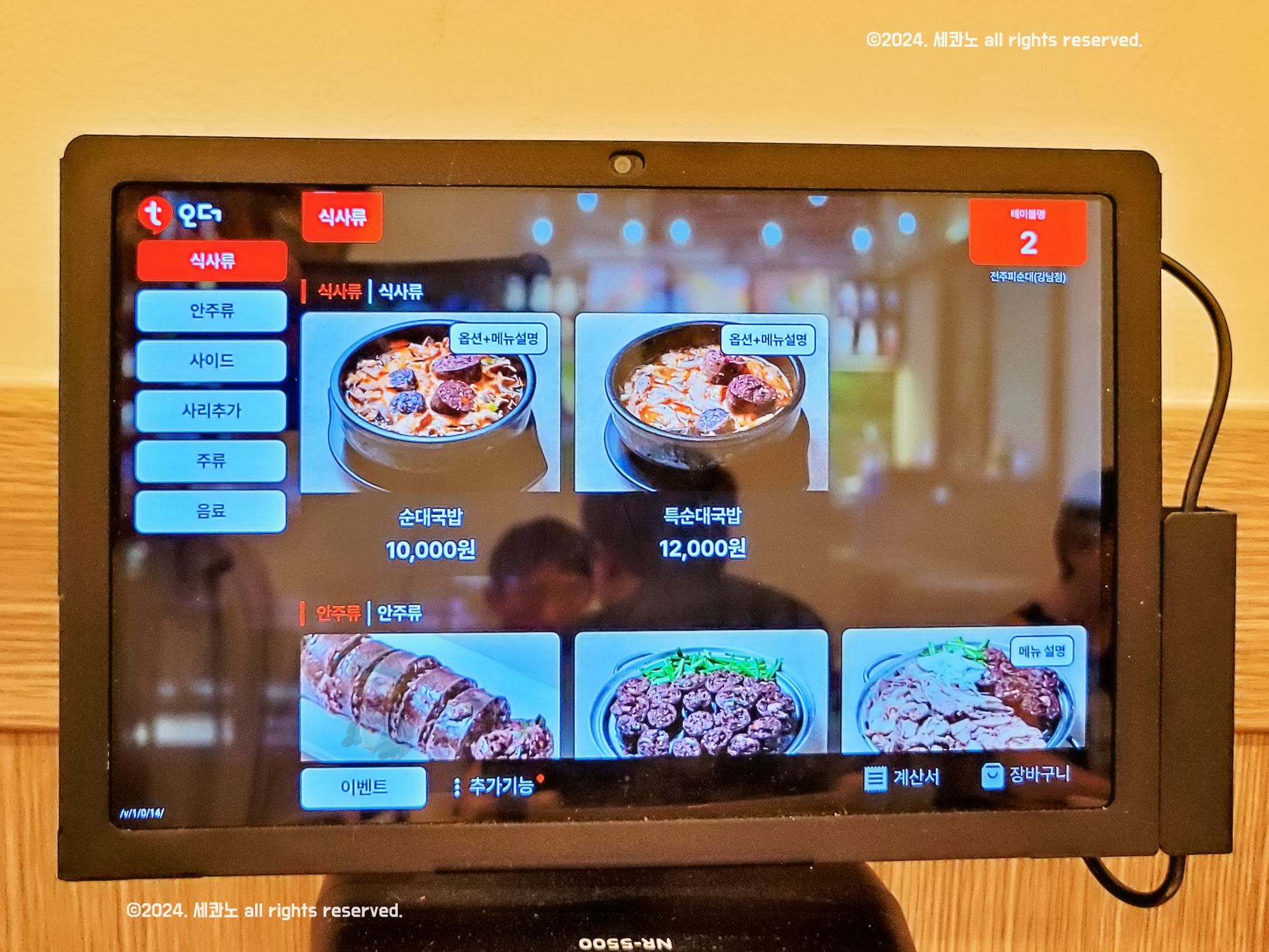 테이블에서 태블릿 오더로 바로 주문이 가능하다.