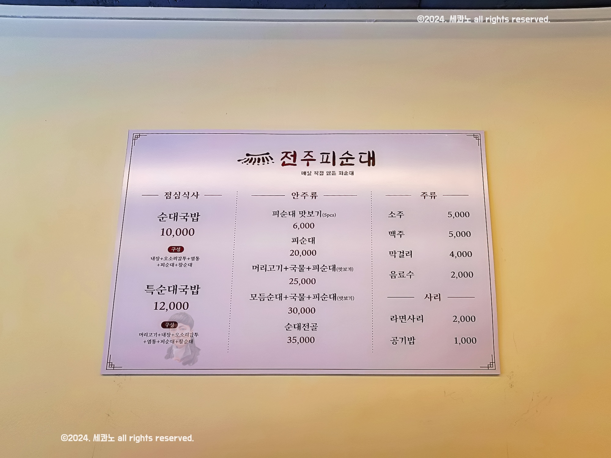 대표메뉴 : 순대국밥 10,000원. 피순대 20,000원.