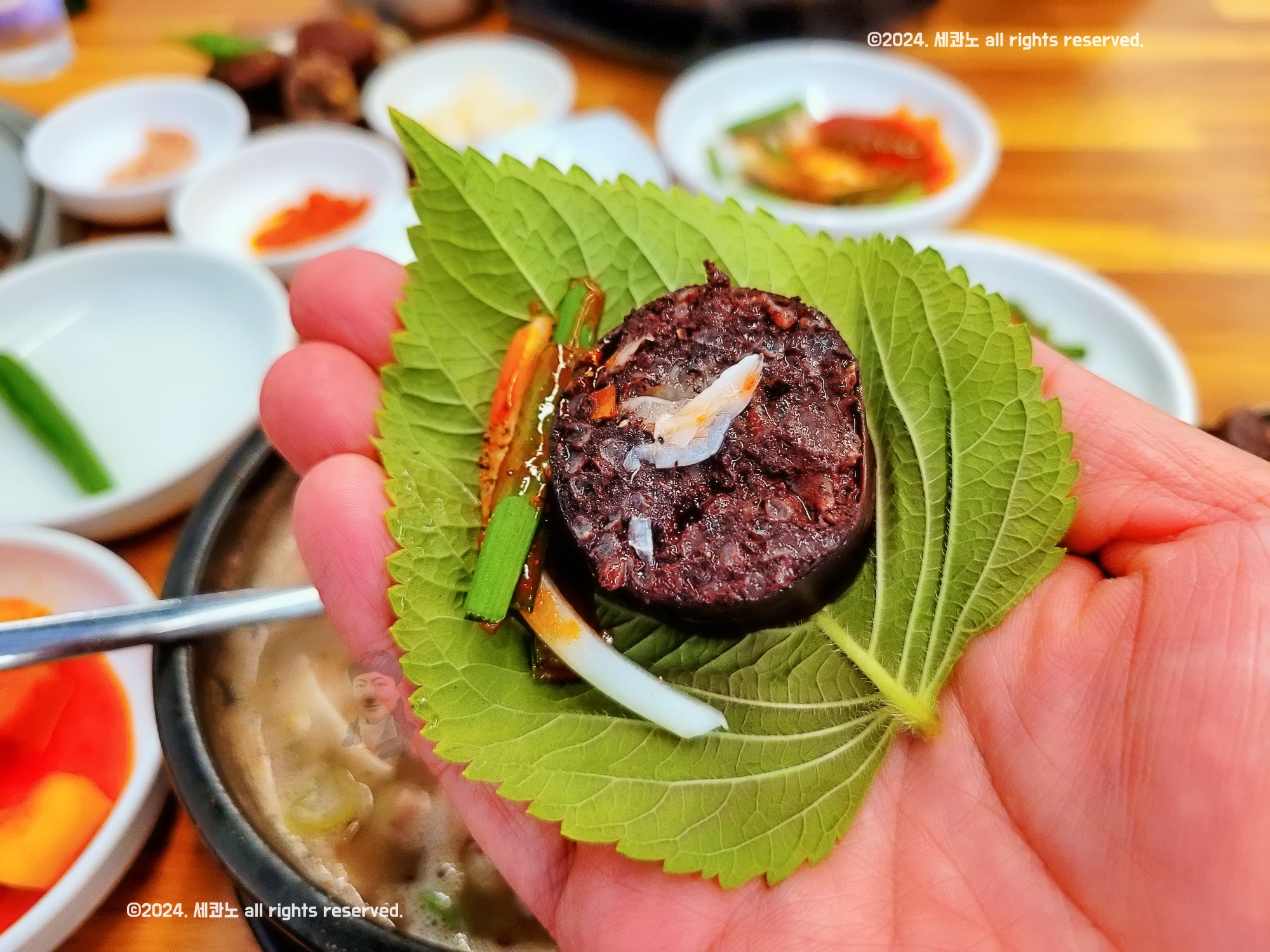 맛보기 피순대에 추가로 깻잎, 마늘이 더 나옴.