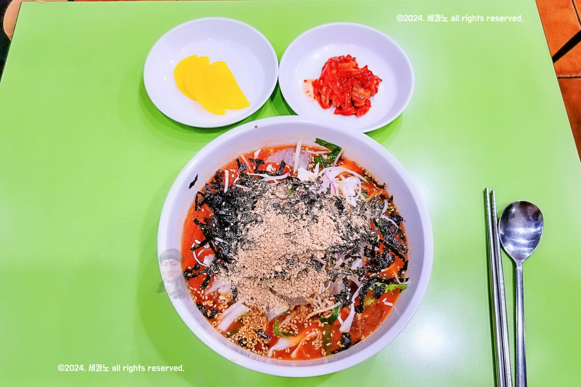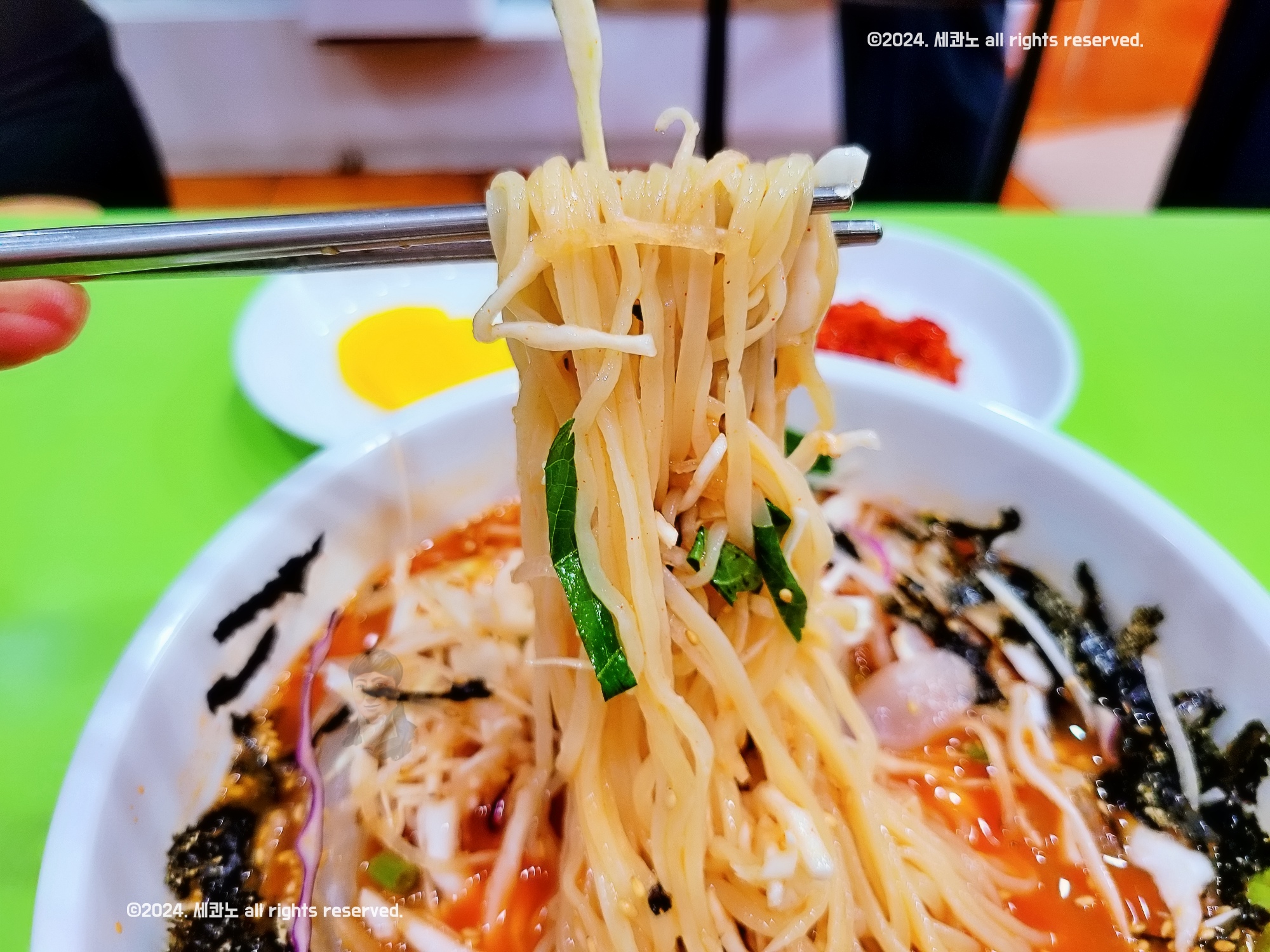 직접 뽑은 생면으로 선보이는 달인의 회국수.