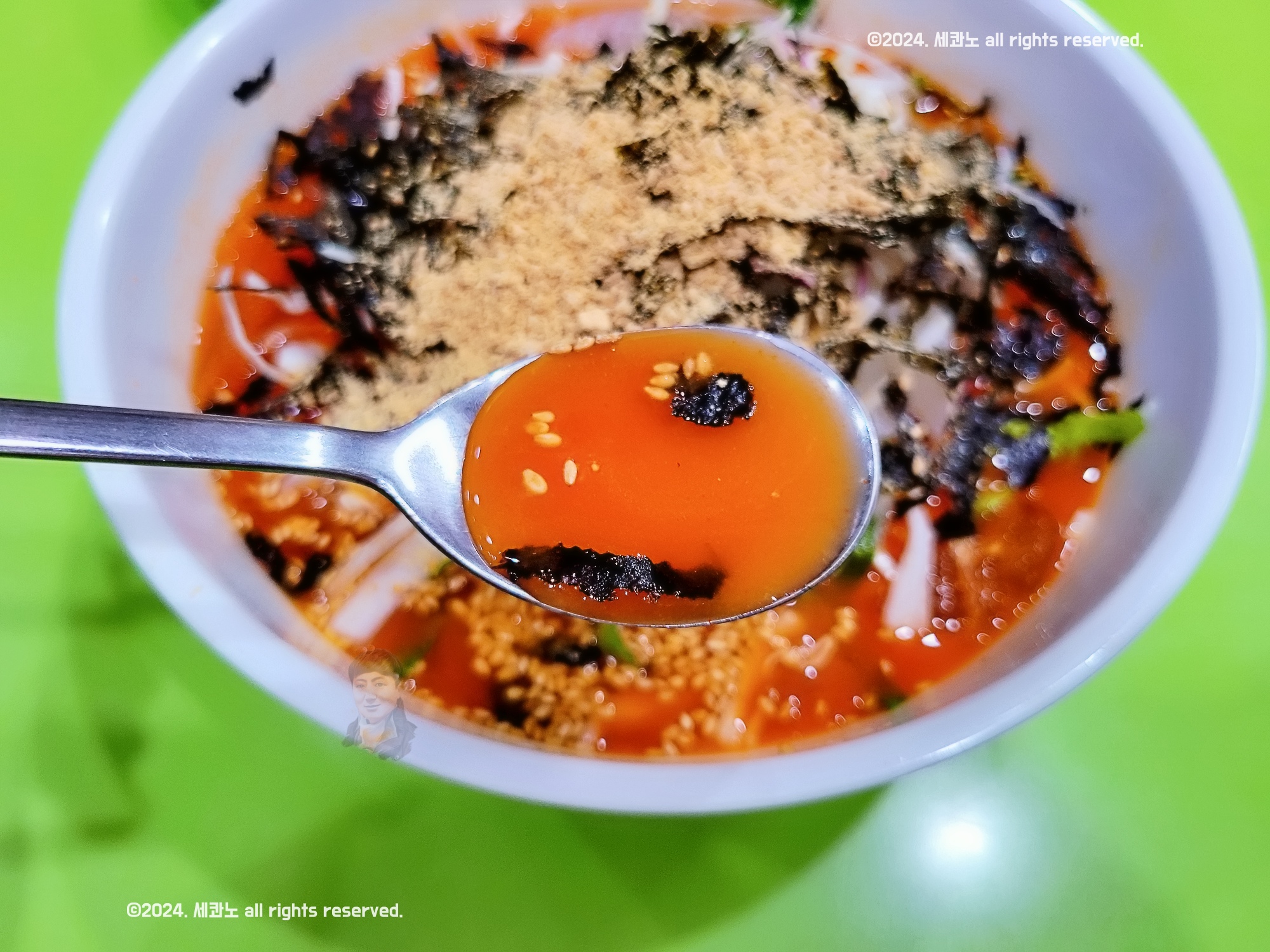 일반적인 물회가 새콤한 맛을 내는 것과는 달리,
